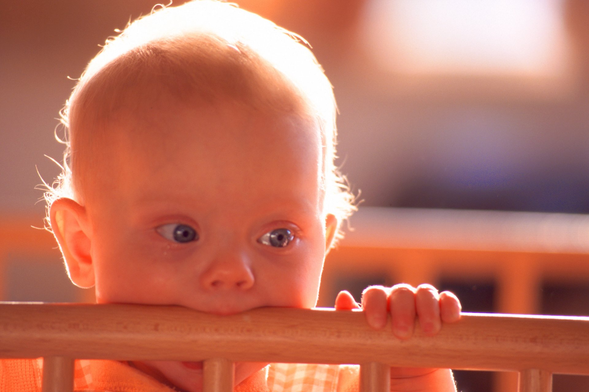 Niño pequeño sentado en la cuna