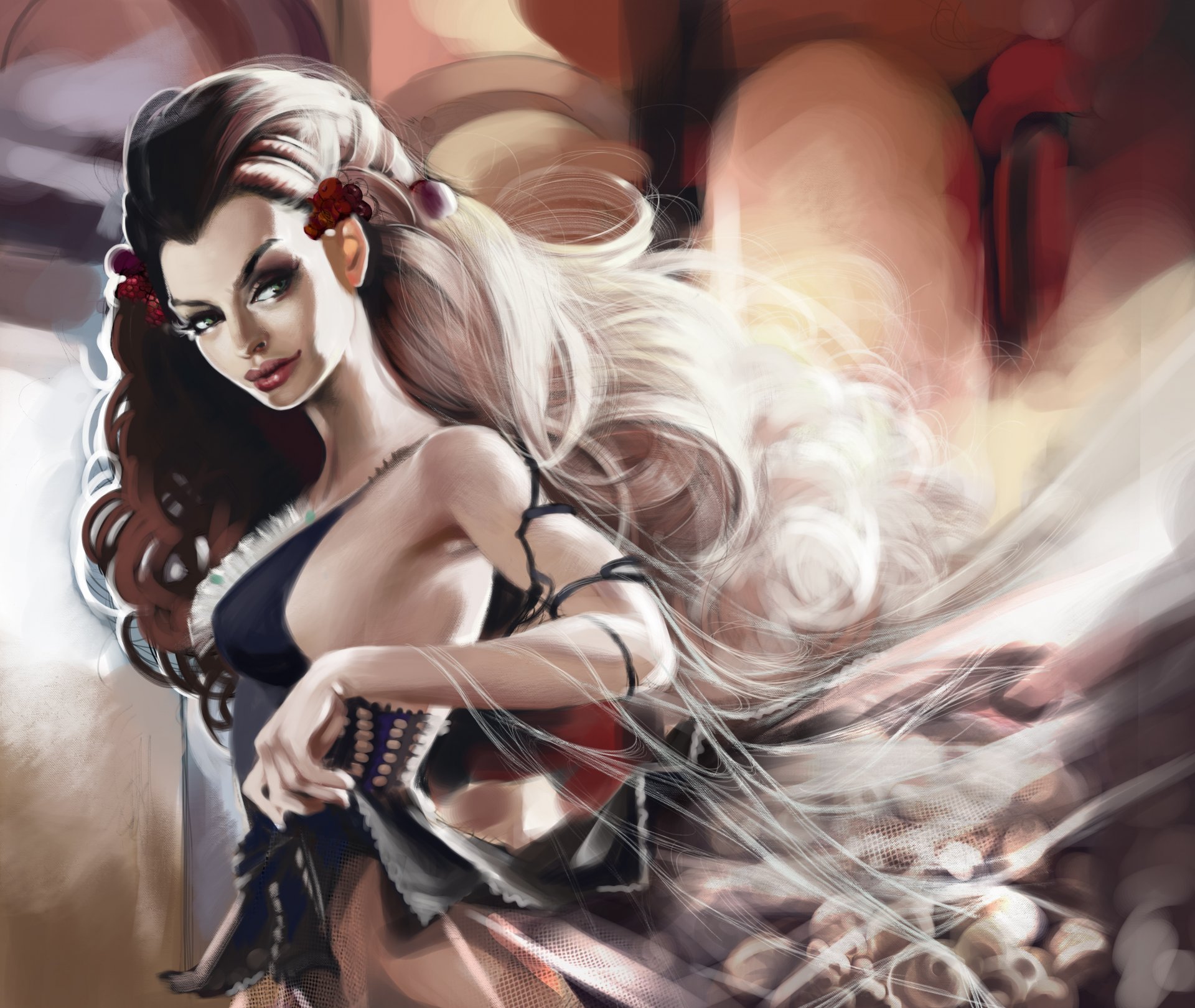 La chica con el pelo morado en el fondo del inviernoLa chica con el pelo morado en el fondo del invierno