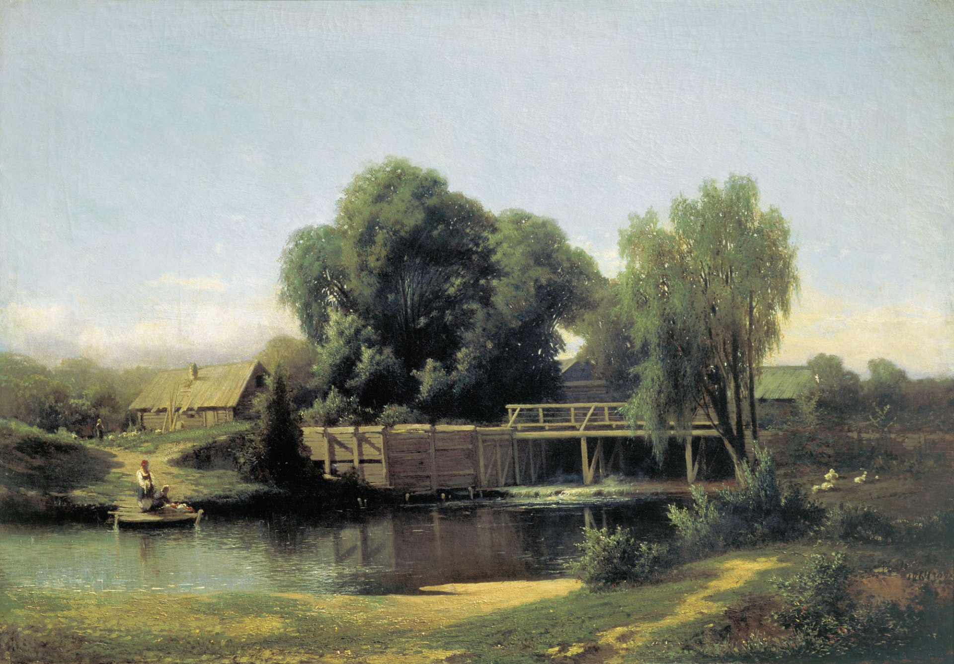 Pintura presa con árboles Kamenev