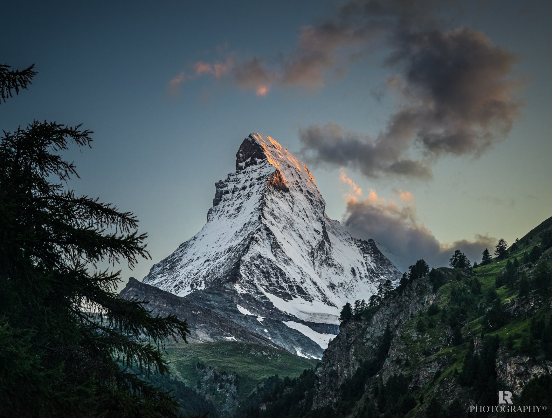 La montaña detrás de los árboles se refleja en el lagoLa montaña detrás de los árboles se refleja en el lago