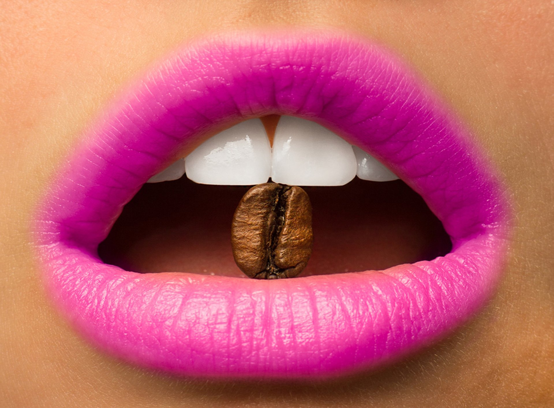 Grano de café en la boca de una niña