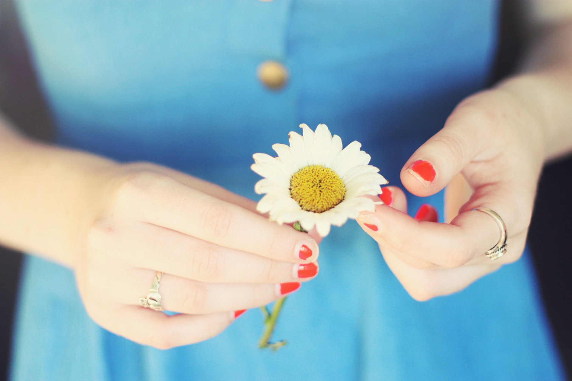 Margarita en las manos de una chica en un vestido azulMargarita en las manos de una chica en un vestido azul