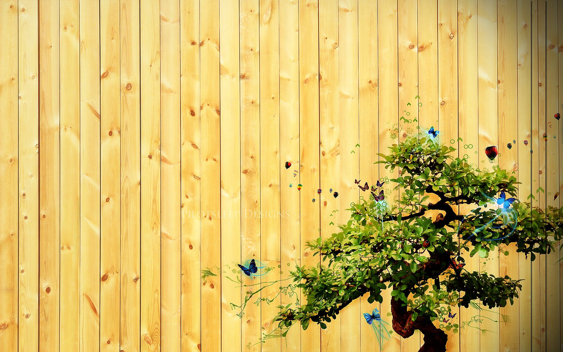 Imagen de un árbol ramificado con mariposas en la cerca
