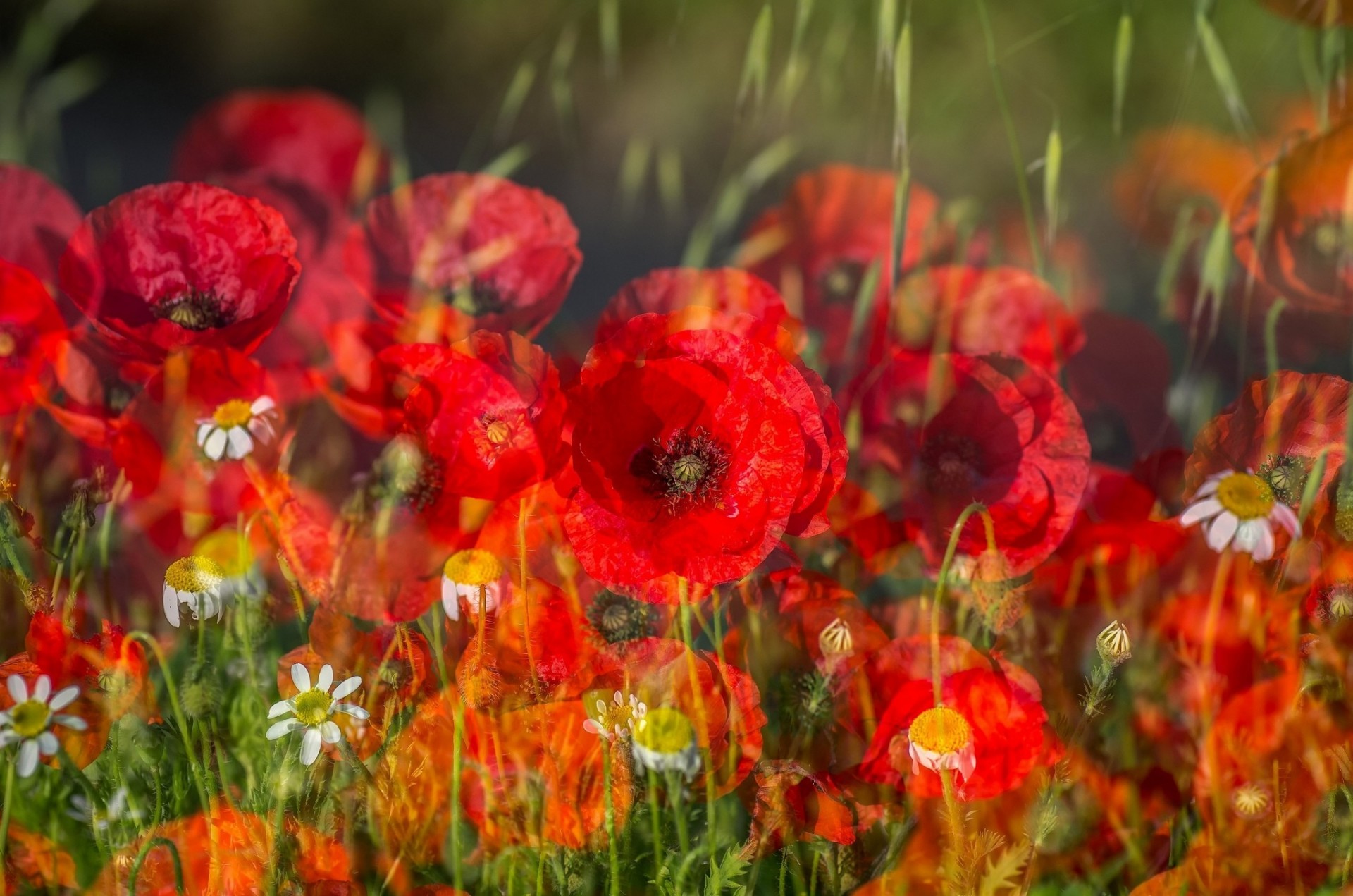 Las amapolas rojas crecen en el campo