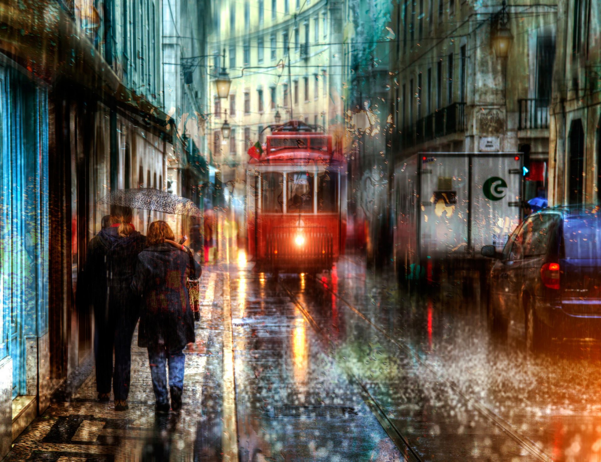 Calle de Lisboa bajo la lluvia