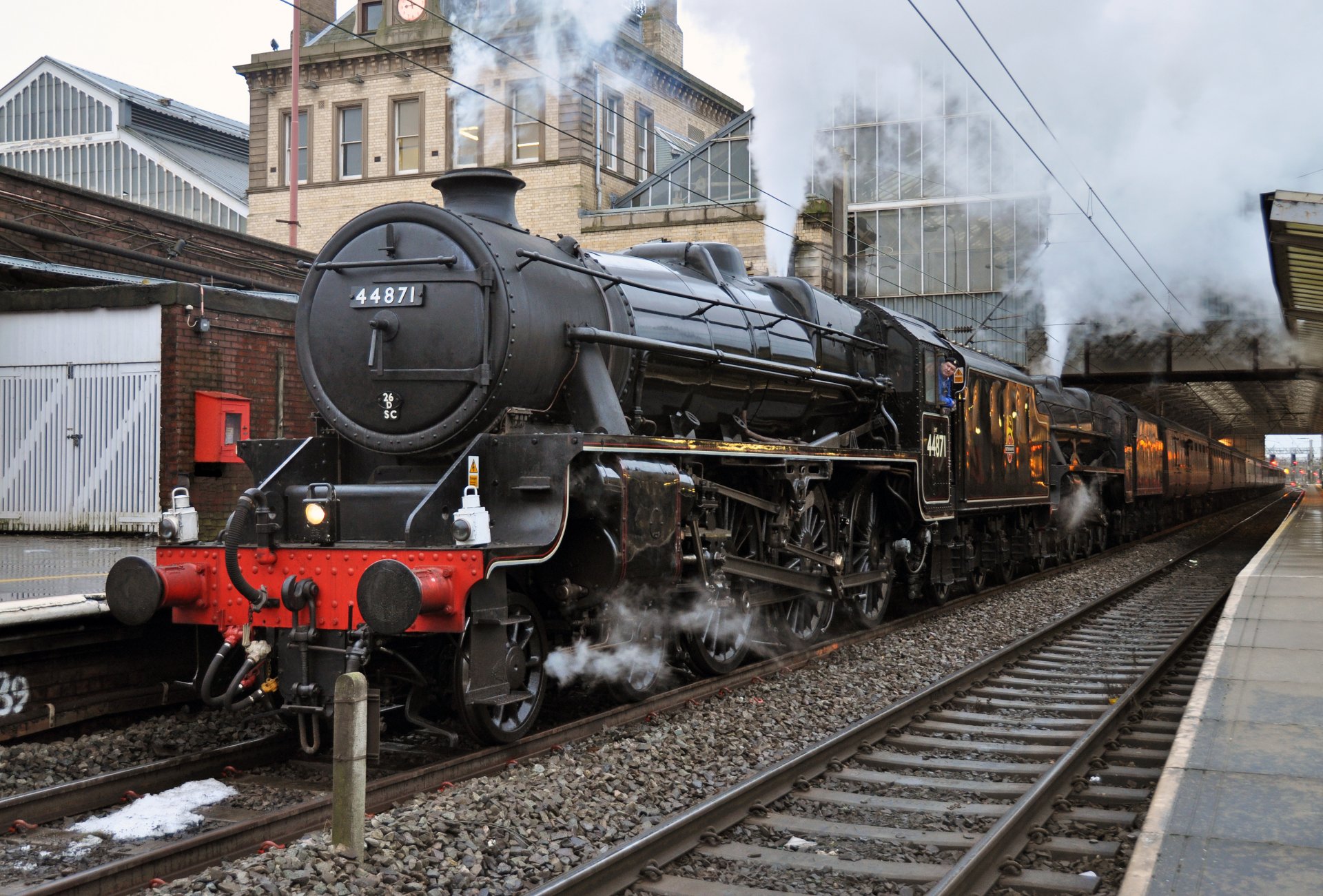 La locomotora llegó al lugar de la parada de la estaciónLa locomotora llegó al lugar de la parada de la estación