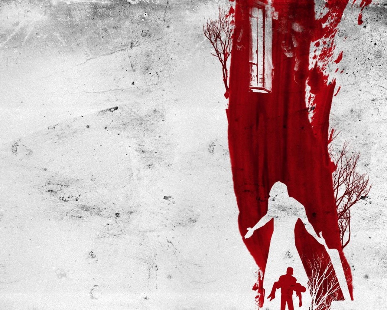 Figura de anime sombrío con jeroglíficos rojos de sangre