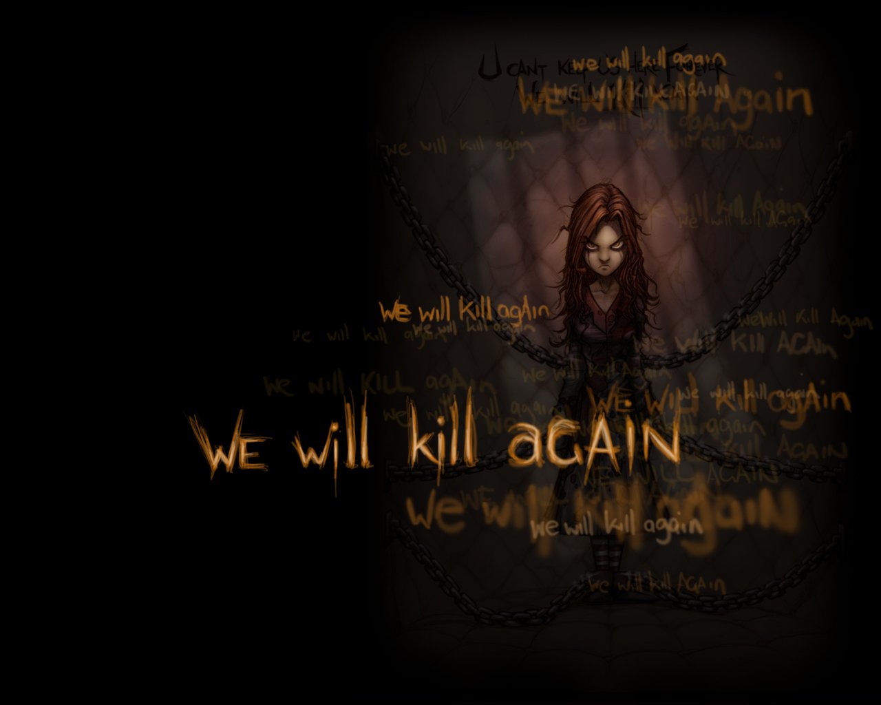 La inscripción el mal está encadenado, vamos a matar a continuaciónLa inscripción el mal está encadenado, vamos a matar a continuación