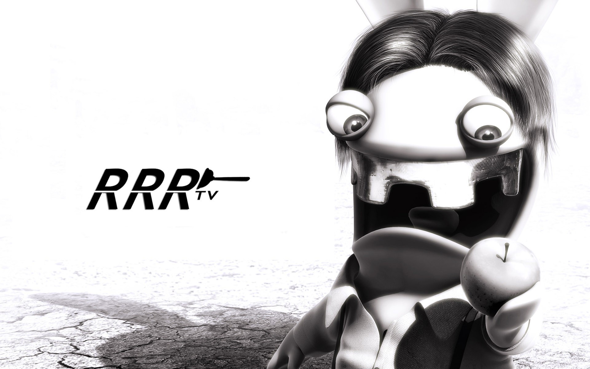 Conejo de miedo comiendo manzana B / W