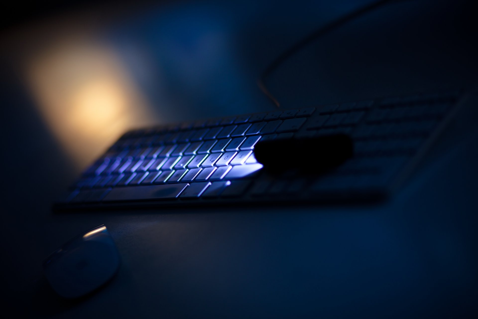 En la luz, el teclado y los ratones parecen una manzana macEn la luz, el teclado y los ratones parecen una manzana mac