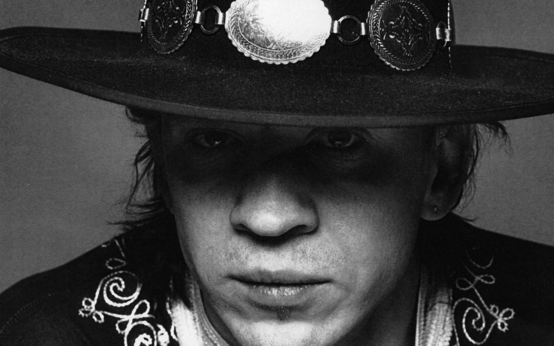Retrato de una celebridad en blanco y negro sobre un fondo uniforme