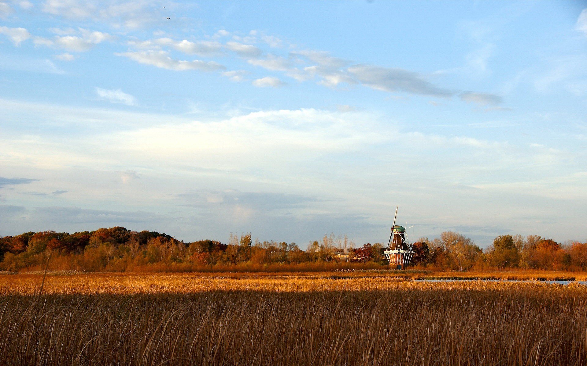 Molino de viento en el fondo de la orden y el agua. italiaMolino de viento en el fondo de la orden y el agua. Italia
