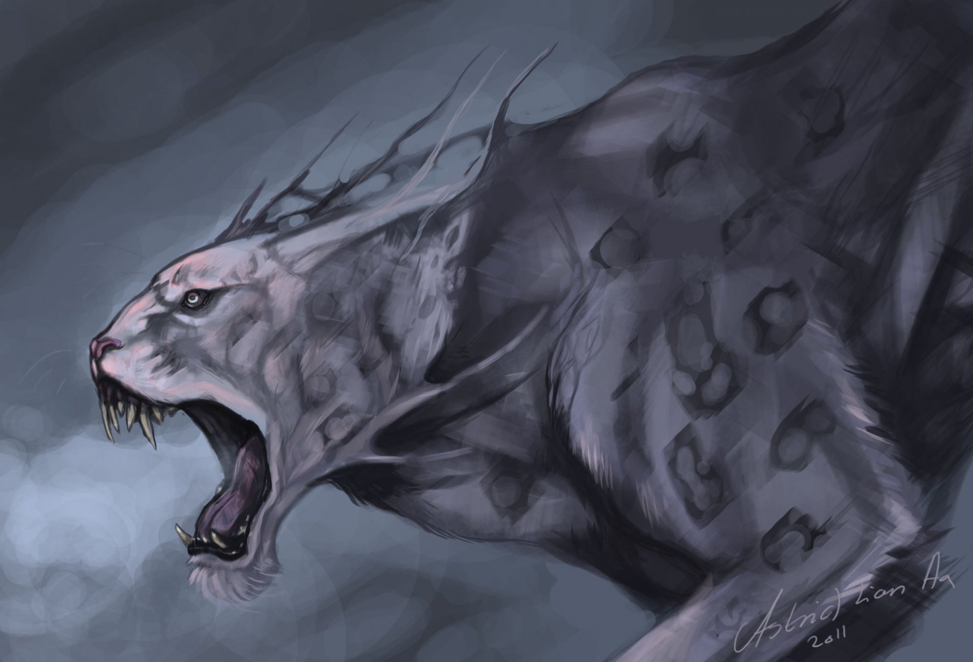 Monstruo depredador como un gato con la boca abierta figura de perfilMonstruo depredador como un gato con la boca abierta figura de perfil