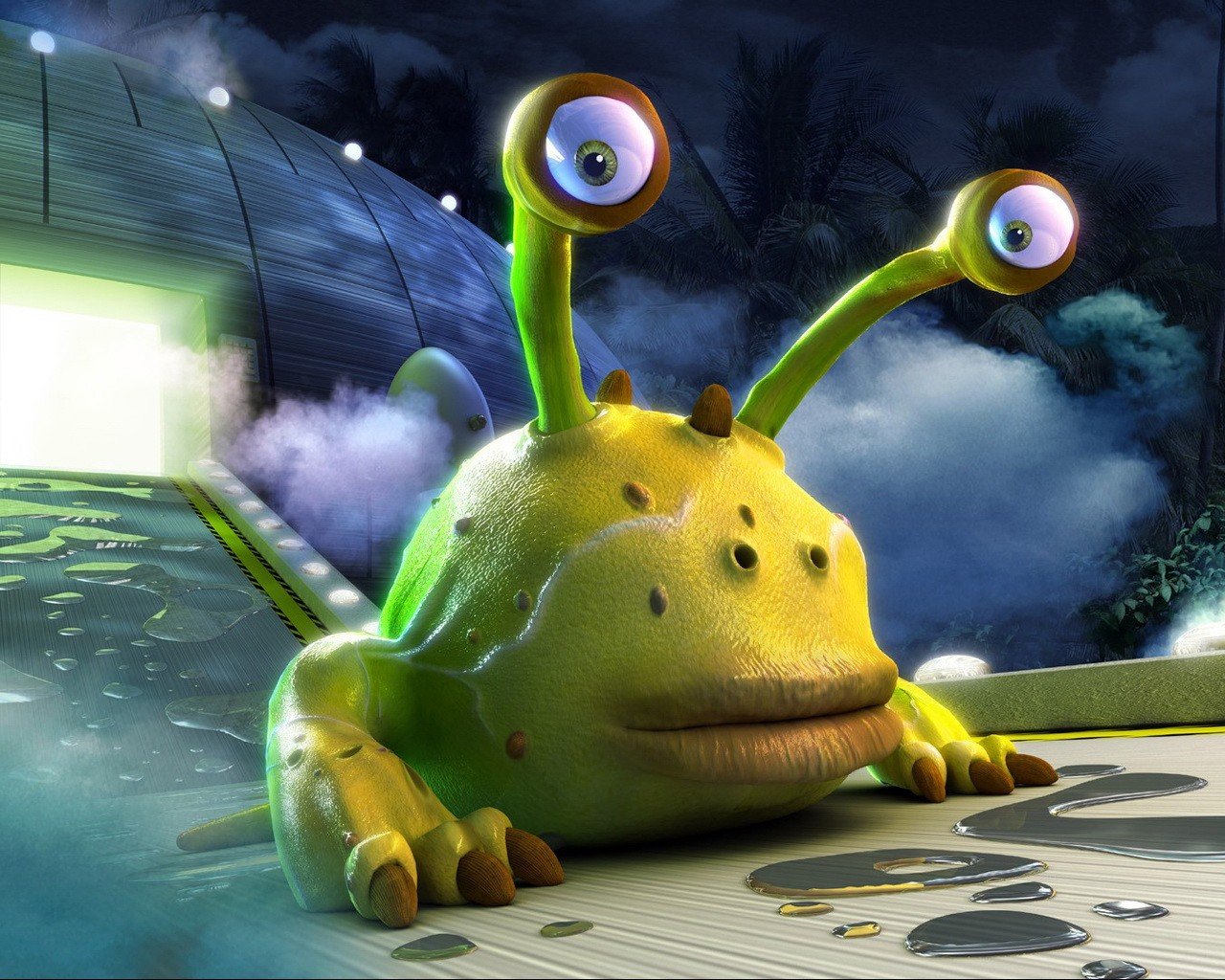 Un monstruo sombrío con hermosos ojos en el fondo de una gran luna azulUn monstruo sombrío con hermosos ojos en el fondo de una gran Luna azul