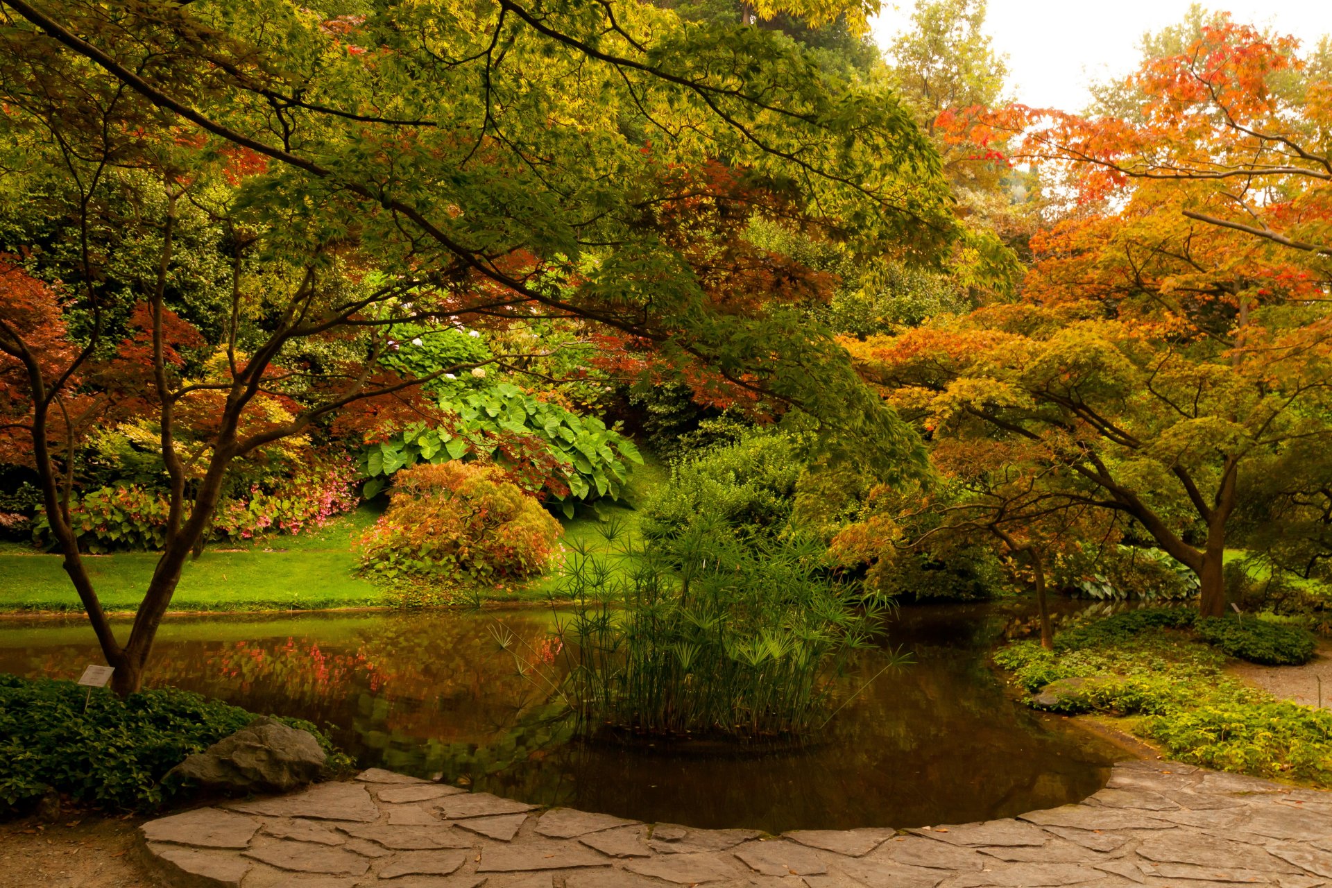 Bancos en el parque de otoño. follaje amarillo caídoBancos en el parque de otoño. Follaje amarillo caído