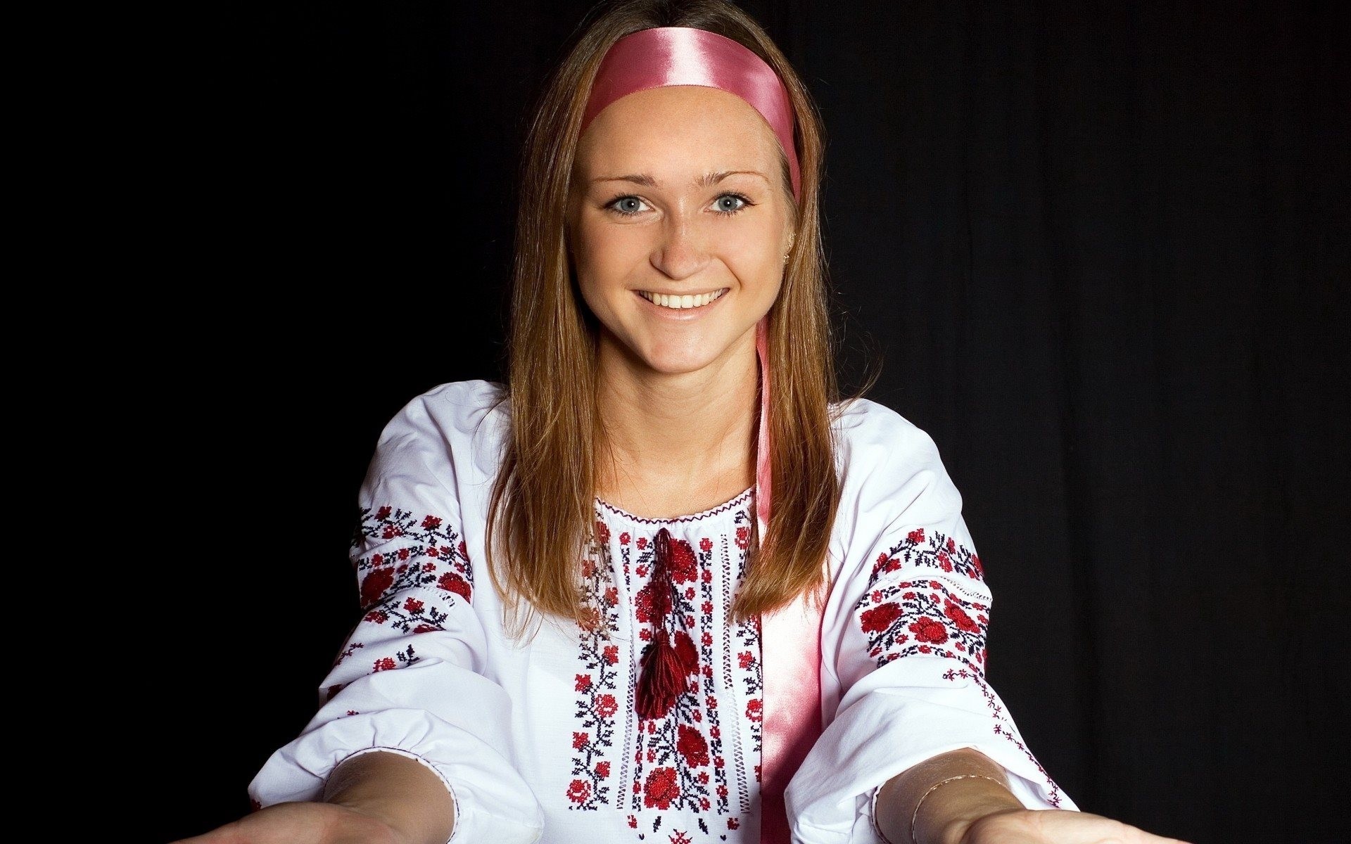 Una mujer con un hombre de blanco junto a un caballo blancoUna mujer con un hombre de blanco junto a un caballo blanco