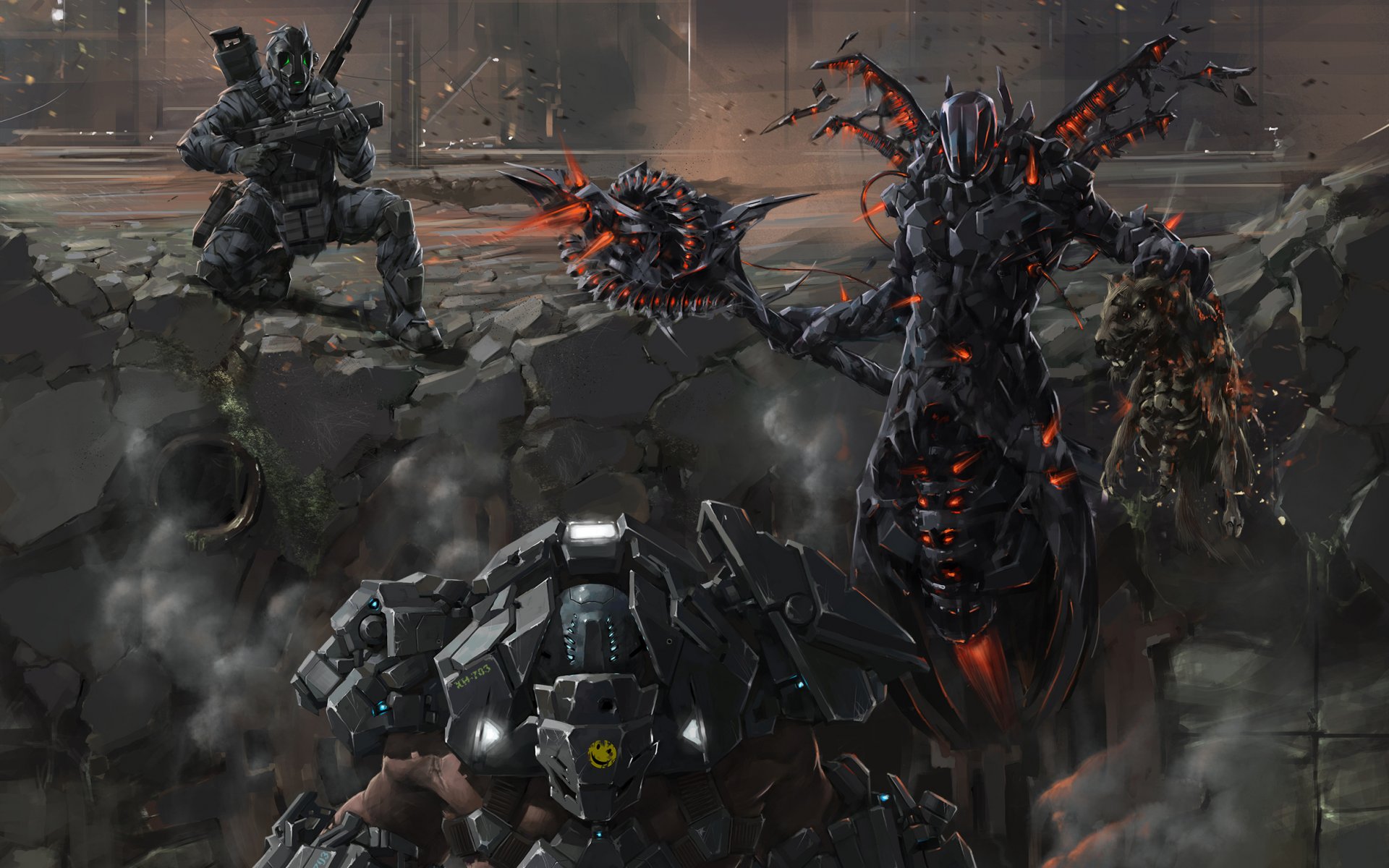Arte en el mundo de warhammer. batalla de hombres y monstruos en el caosArte en el mundo de Warhammer. Batalla de hombres y monstruos en el caos