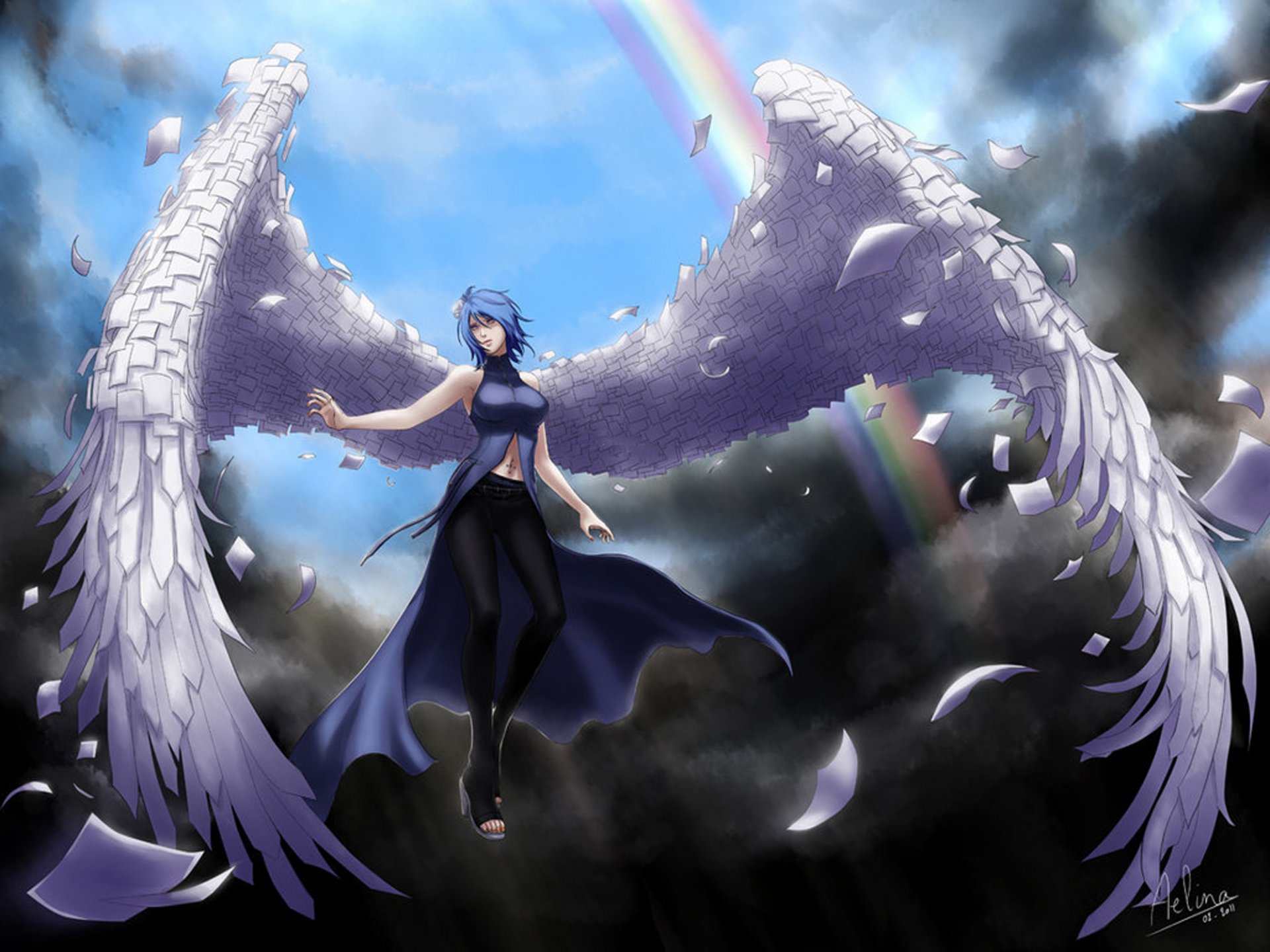 Arte anime con chica con alas