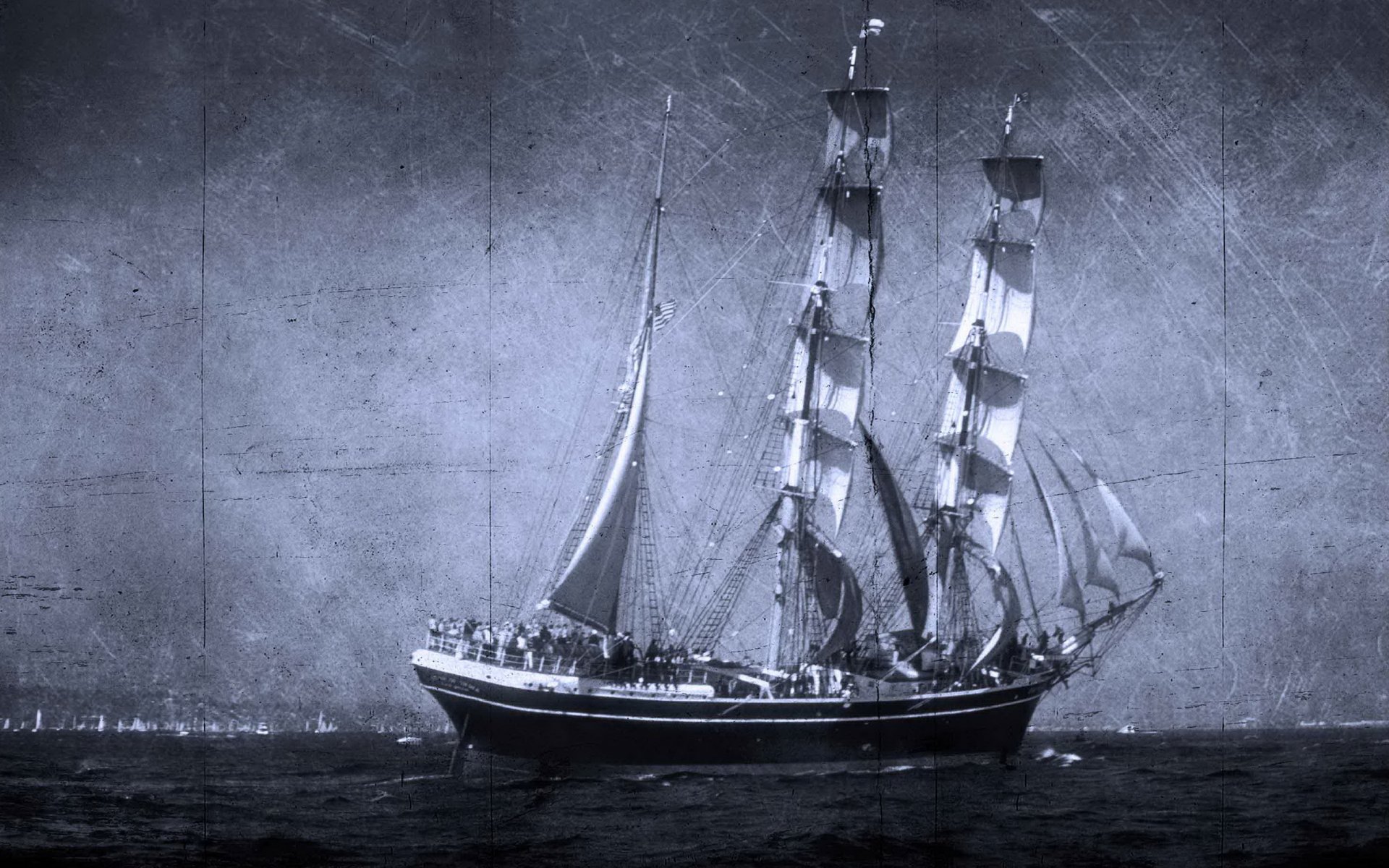 Imagen aerografiada de una cascada frente a un barcoImagen aerografiada de una cascada frente a un barco