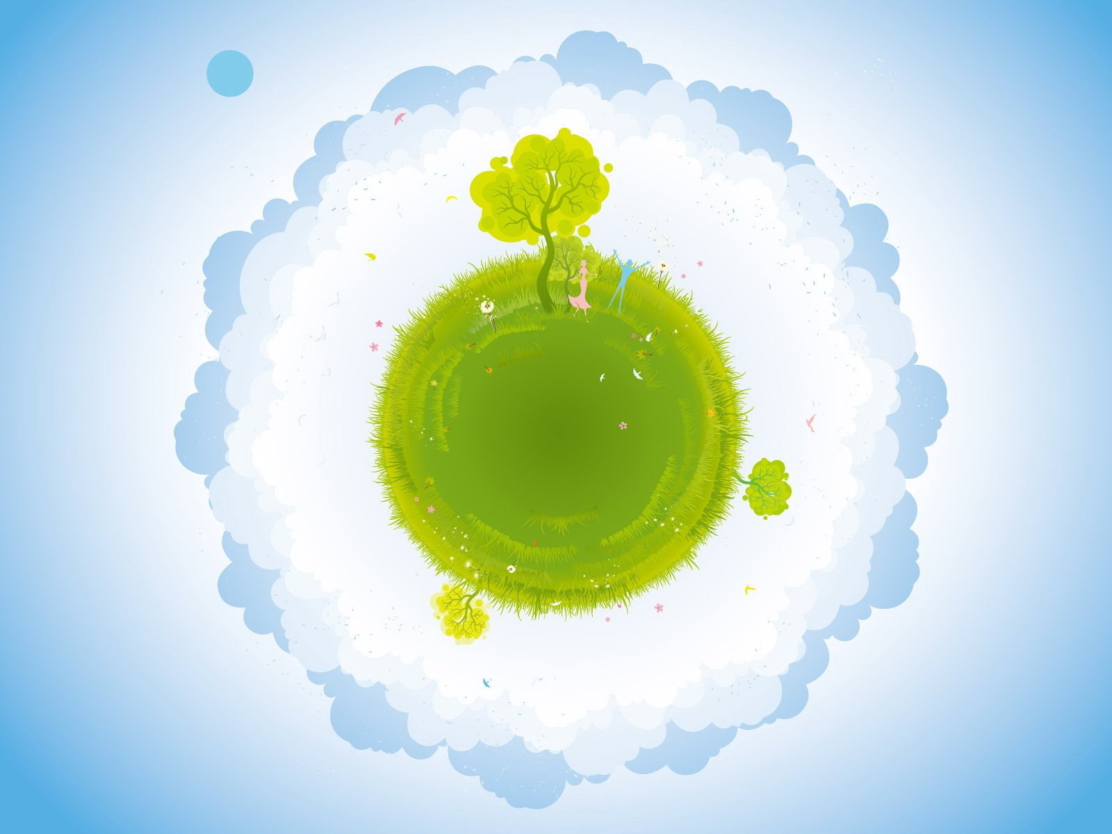 En las nubes azules hay un círculo verde y árbolesEn las nubes azules hay un círculo verde y árboles