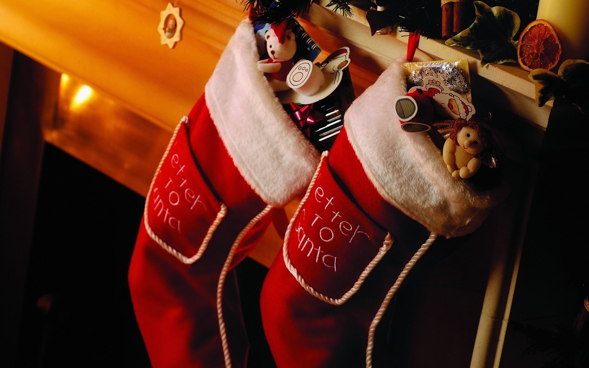 Calcetines rojos de vacaciones para regalos de año nuevo
