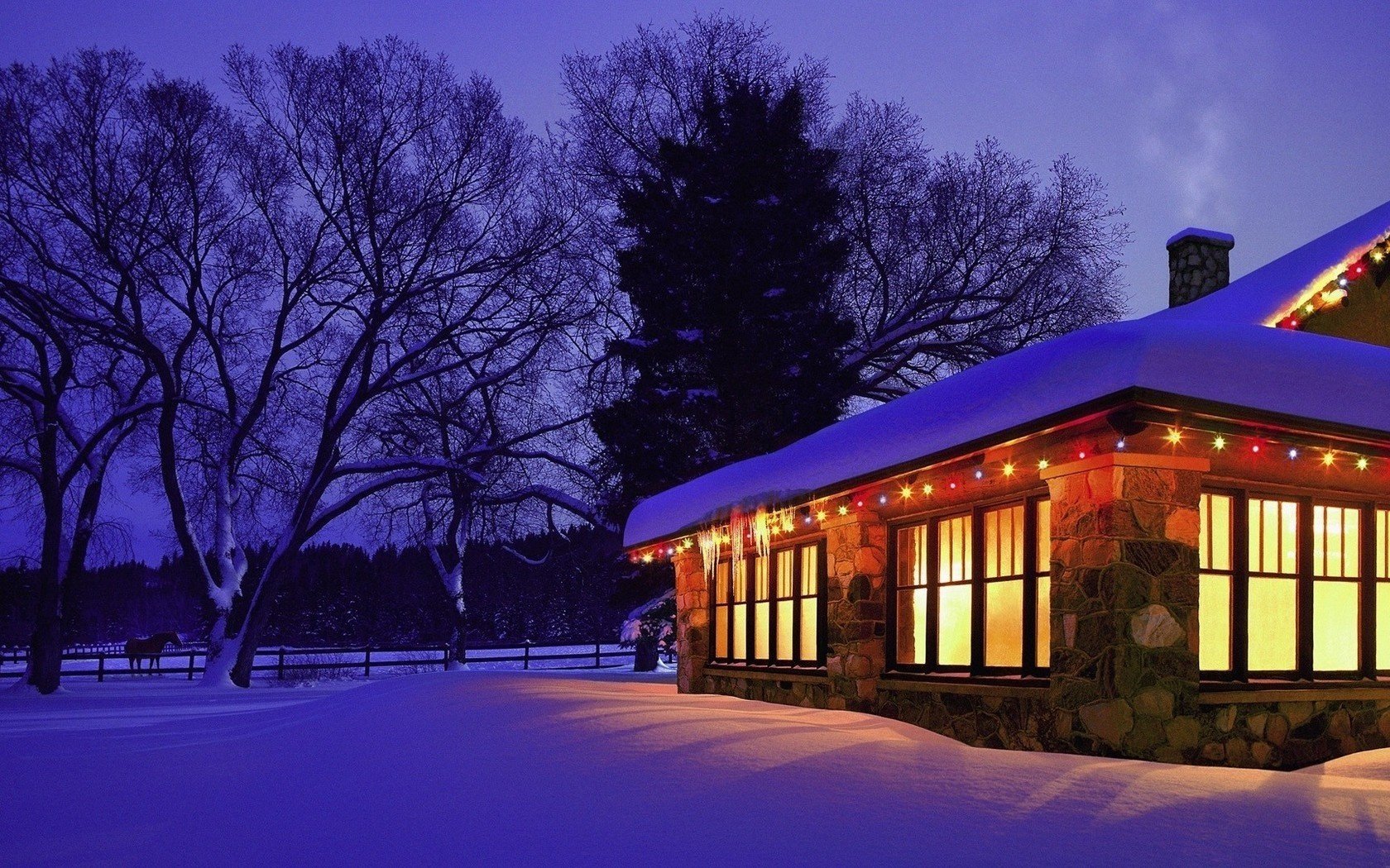 Tarjeta de navidad. casa de invierno. humo de la chimeneaTarjeta de Navidad. Casa de invierno. Humo de la chimenea