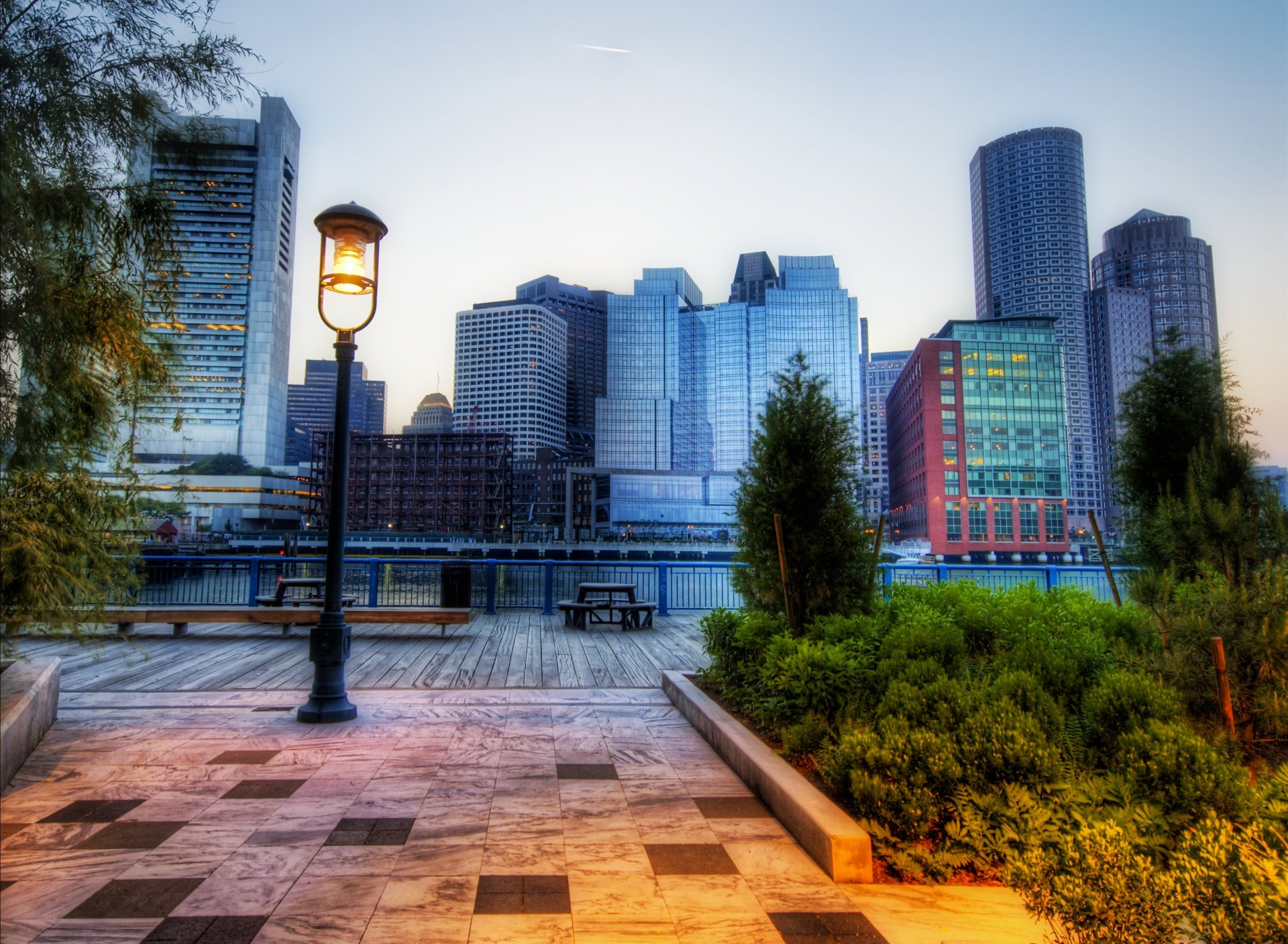 Linterna en el parque de boston en el fondo de los edificiosLinterna en el parque de Boston en el fondo de los edificios