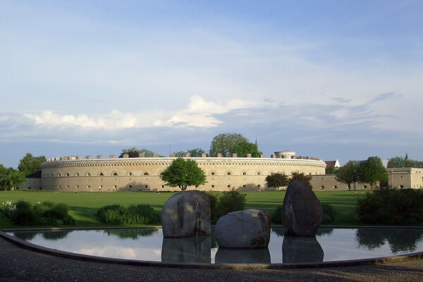 Parque con un cuerpo de agua cerca de la fortaleza alemana