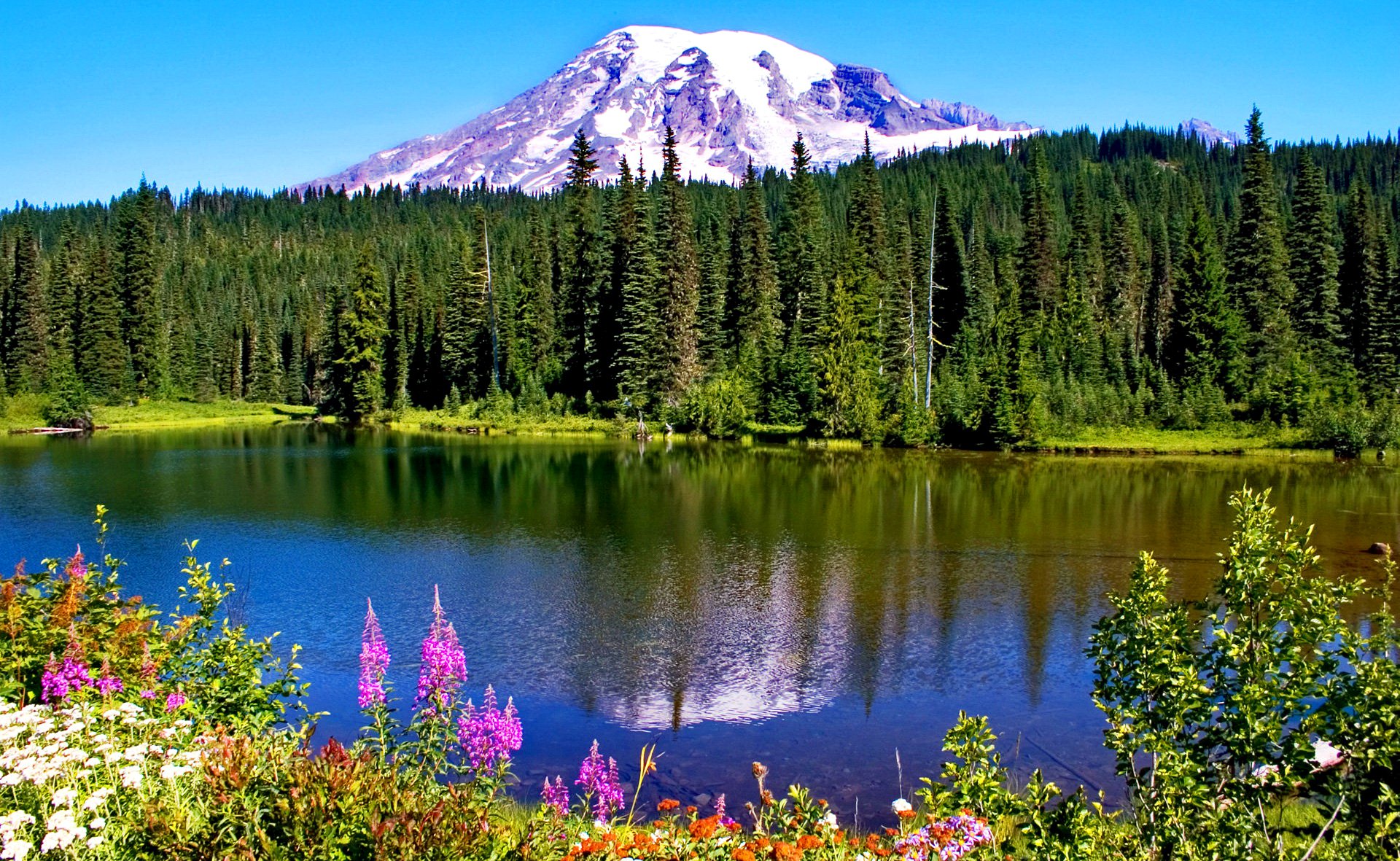 Parque nacional en los Estados Unidos. Bosque de otoño con lago