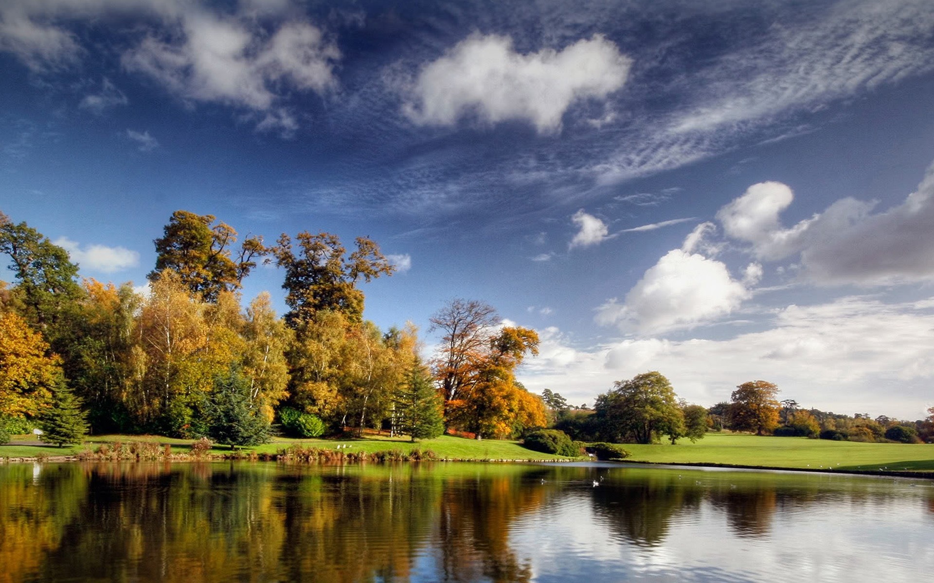 Paisaje de otoño de inglaterra árboles en el reflejo del lagoPaisaje de otoño de Inglaterra árboles en el reflejo del lago