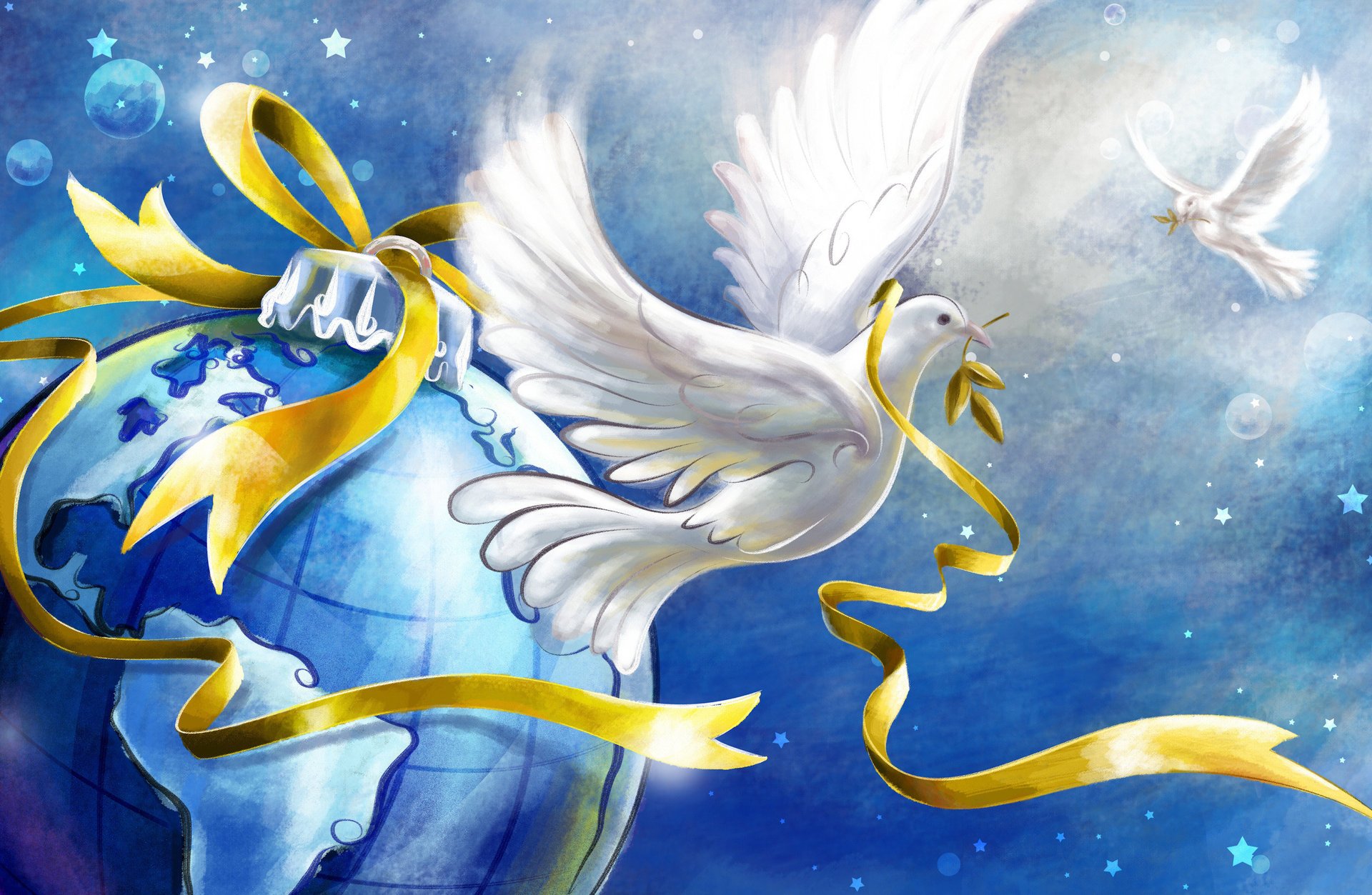 La paloma de la paz vuela sobre la tierra. ¡la cinta de la amistad nos regala!La paloma de la paz vuela sobre la tierra. ¡La cinta de la amistad nos regala!