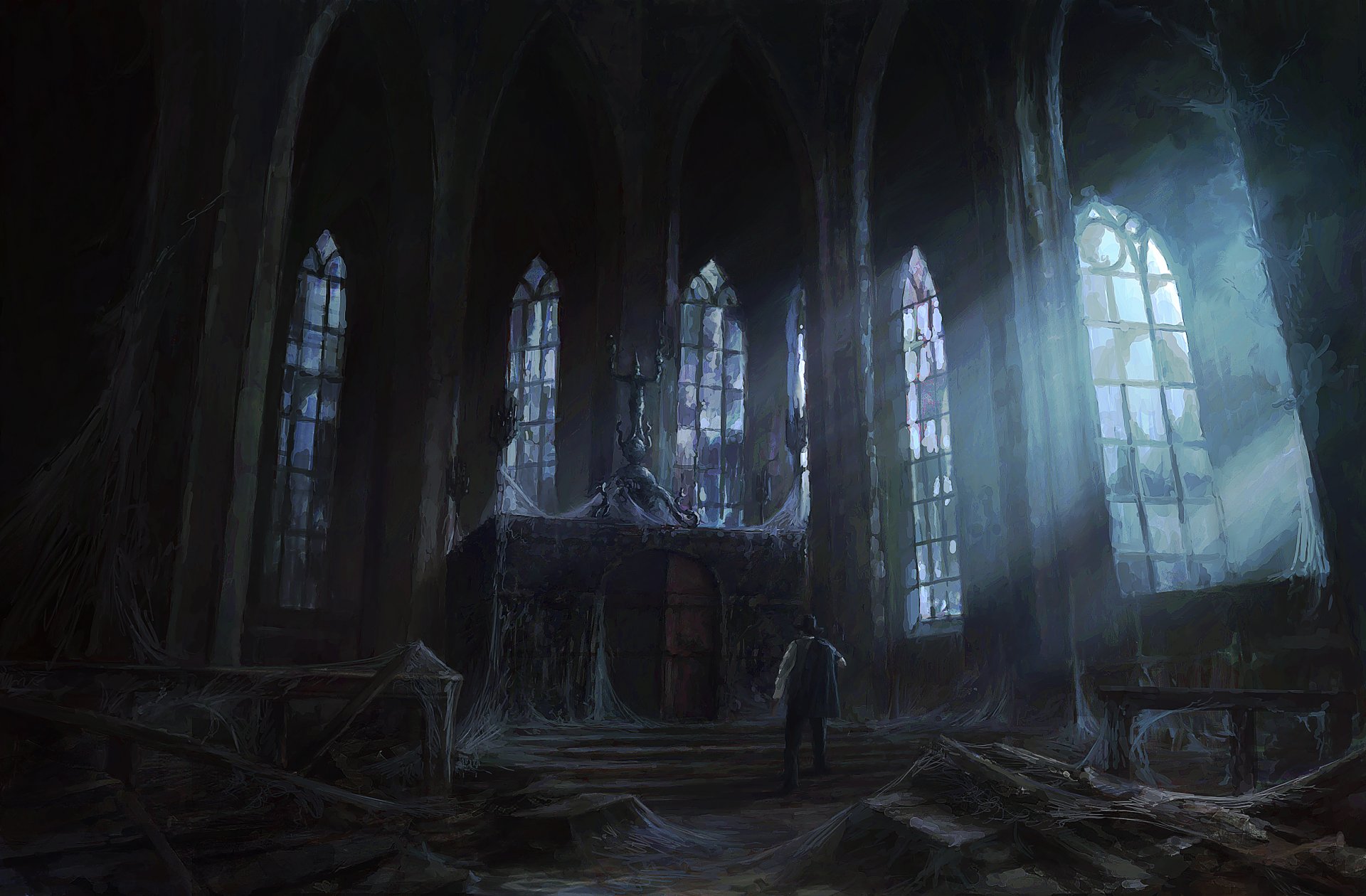 La luz de la Luna en un oscuro castillo abandonado
