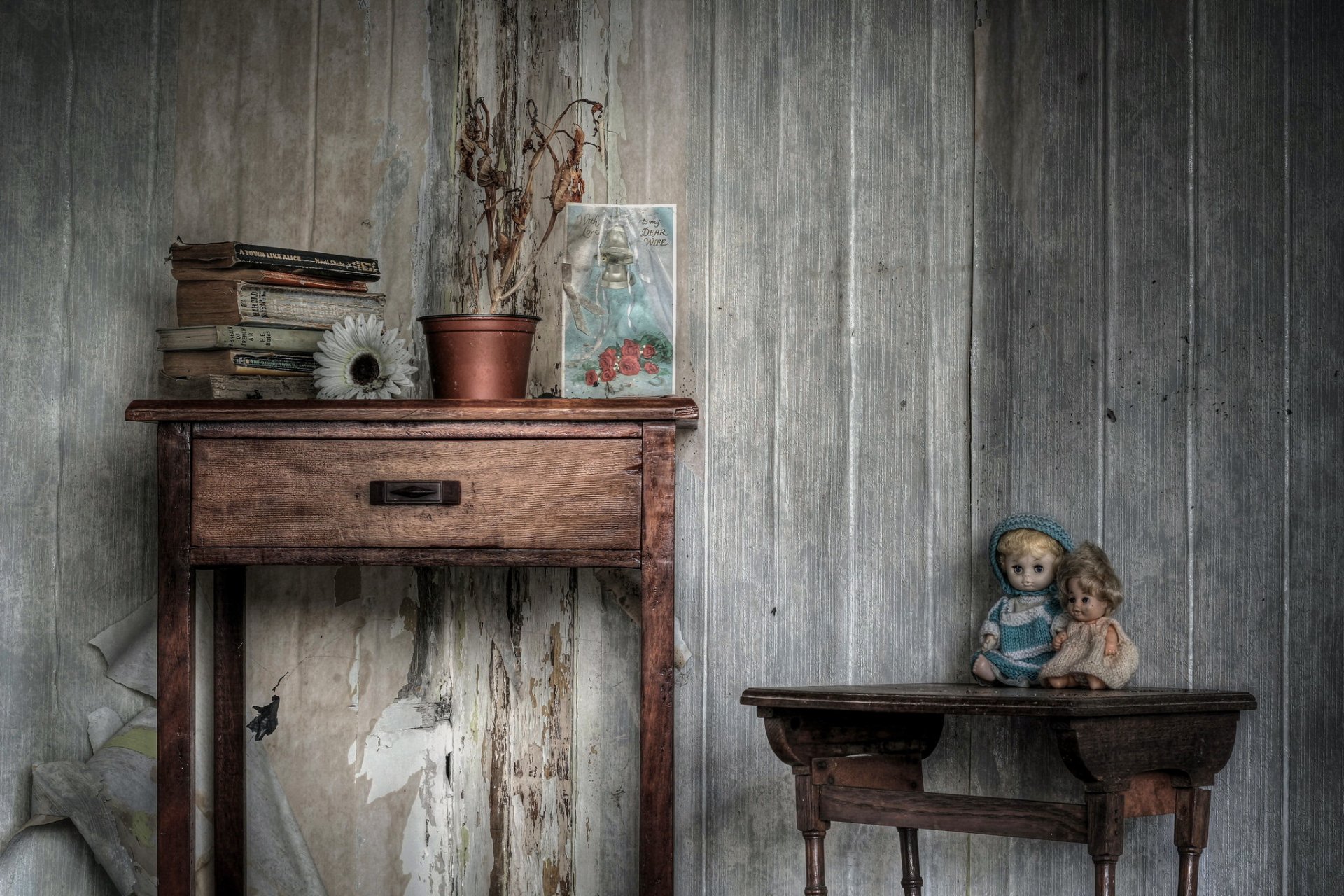 Electrodomésticos de cocina, estufa y nevera . Estilo interior de madera . Muebles y mesa y rincón