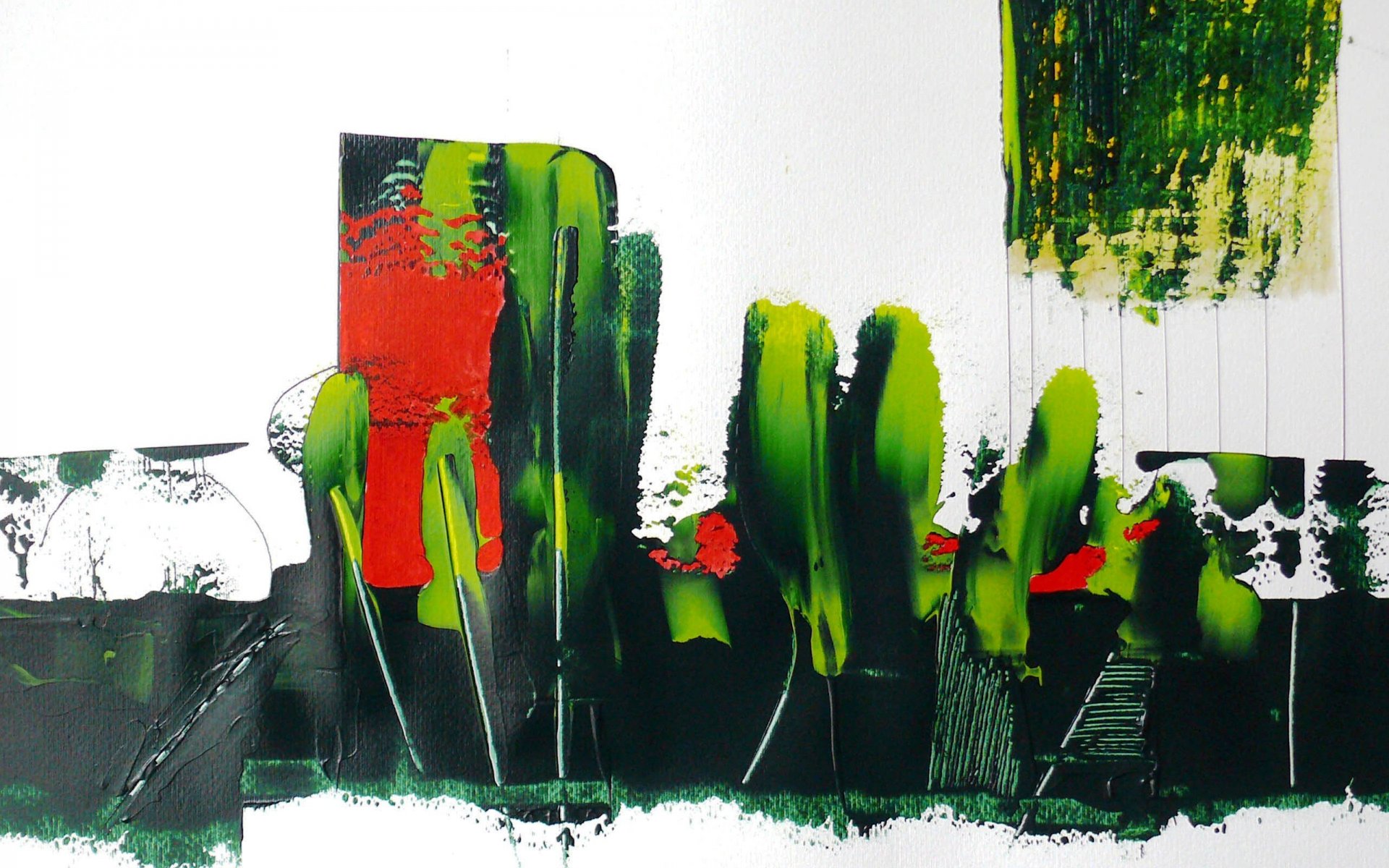 Fondo abstracto y formas rojas y verdes de diferentes formas