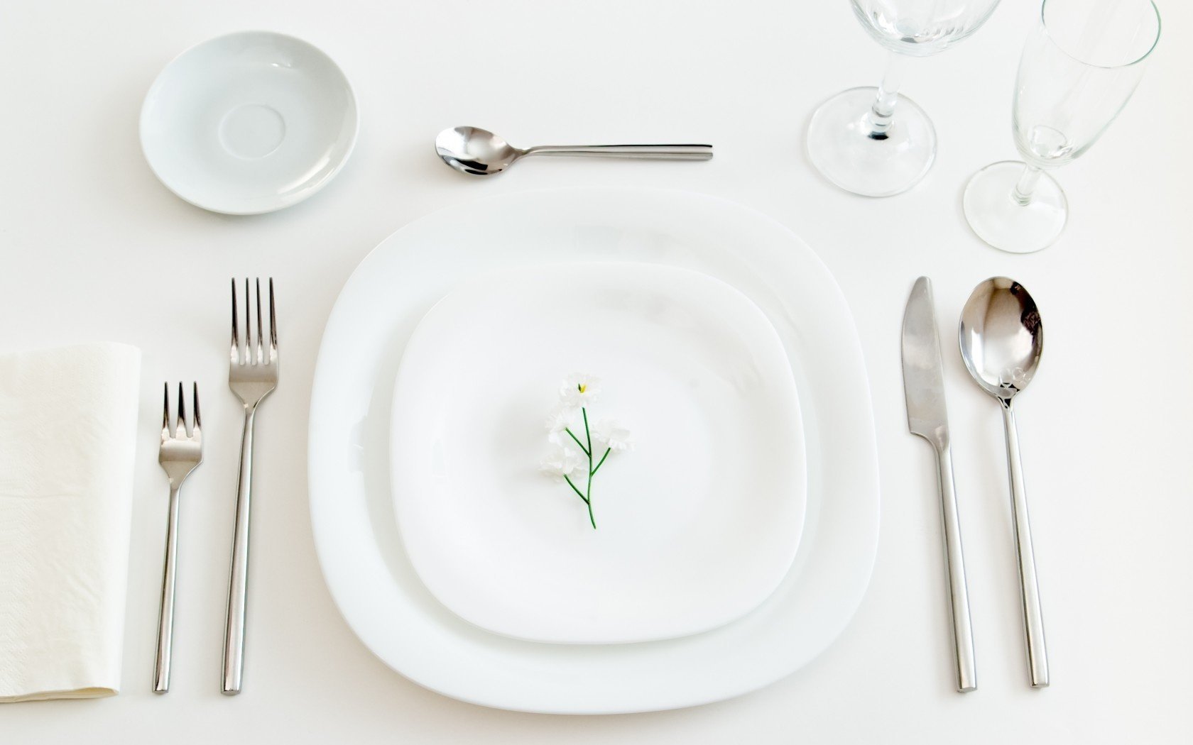 Flor en un plato blanco sobre una mesa blanca con electrodomésticosFlor en un plato blanco sobre una mesa blanca con electrodomésticos