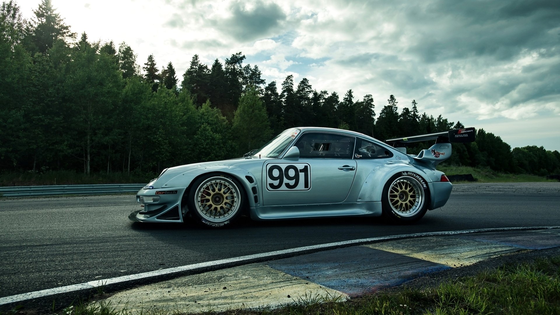 Porsche carrera 911 en el fondo de edificios de varios pisos