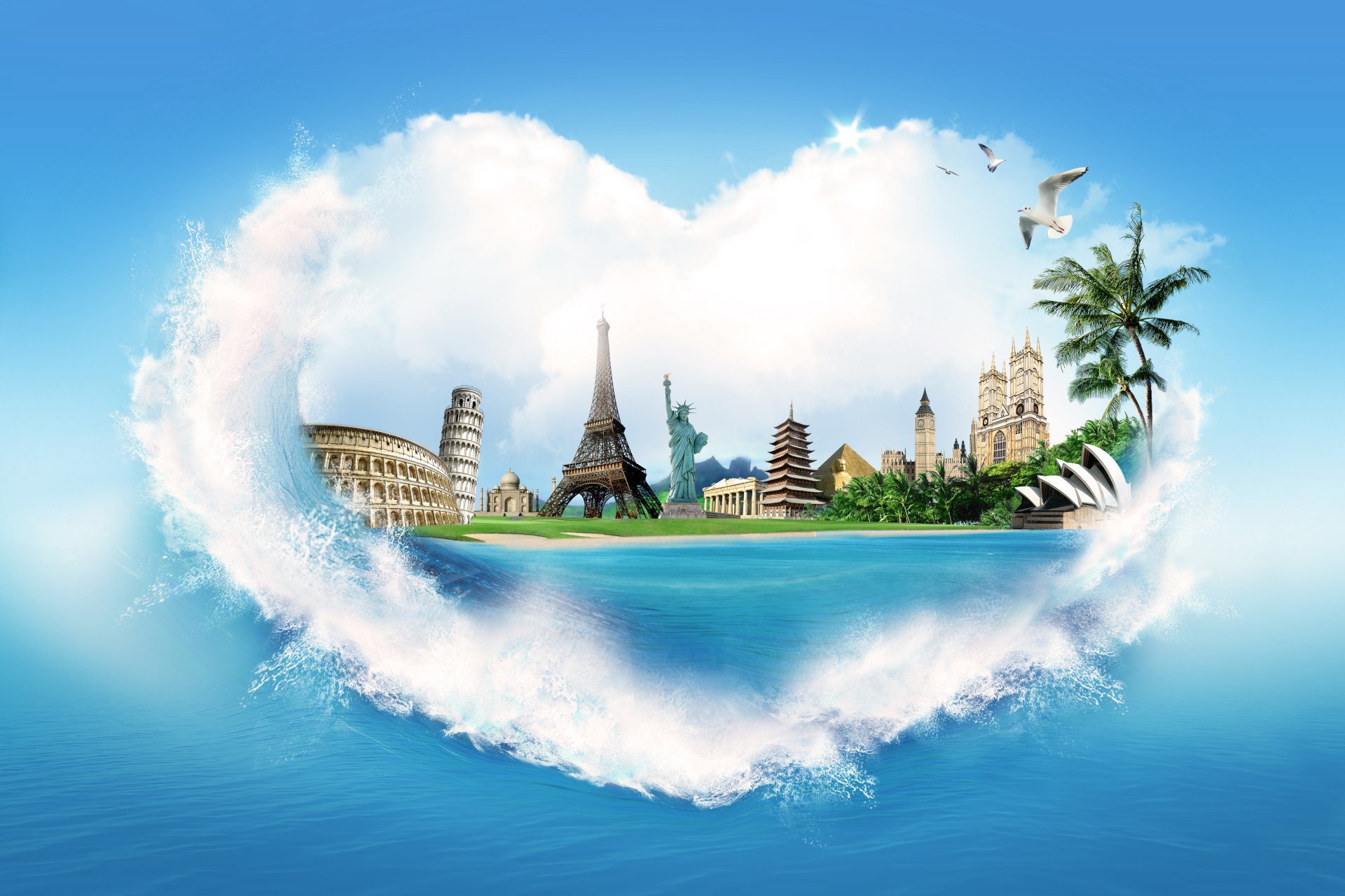 Arte con la torre eiffel, la estatua de la libertad, el coliseo y la pirámideArte con la torre Eiffel, la estatua de la libertad, el Coliseo y la pirámide