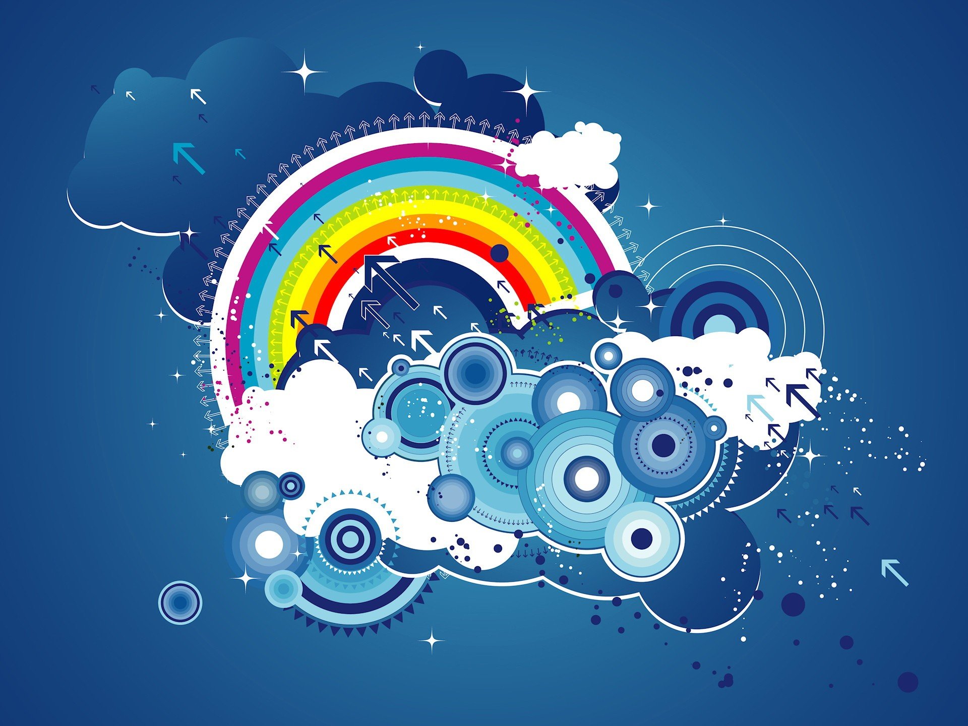Fondo de pantalla con el mundo verde, el arco iris y el pájaroFondo de pantalla con el mundo verde, el arco iris y el pájaro