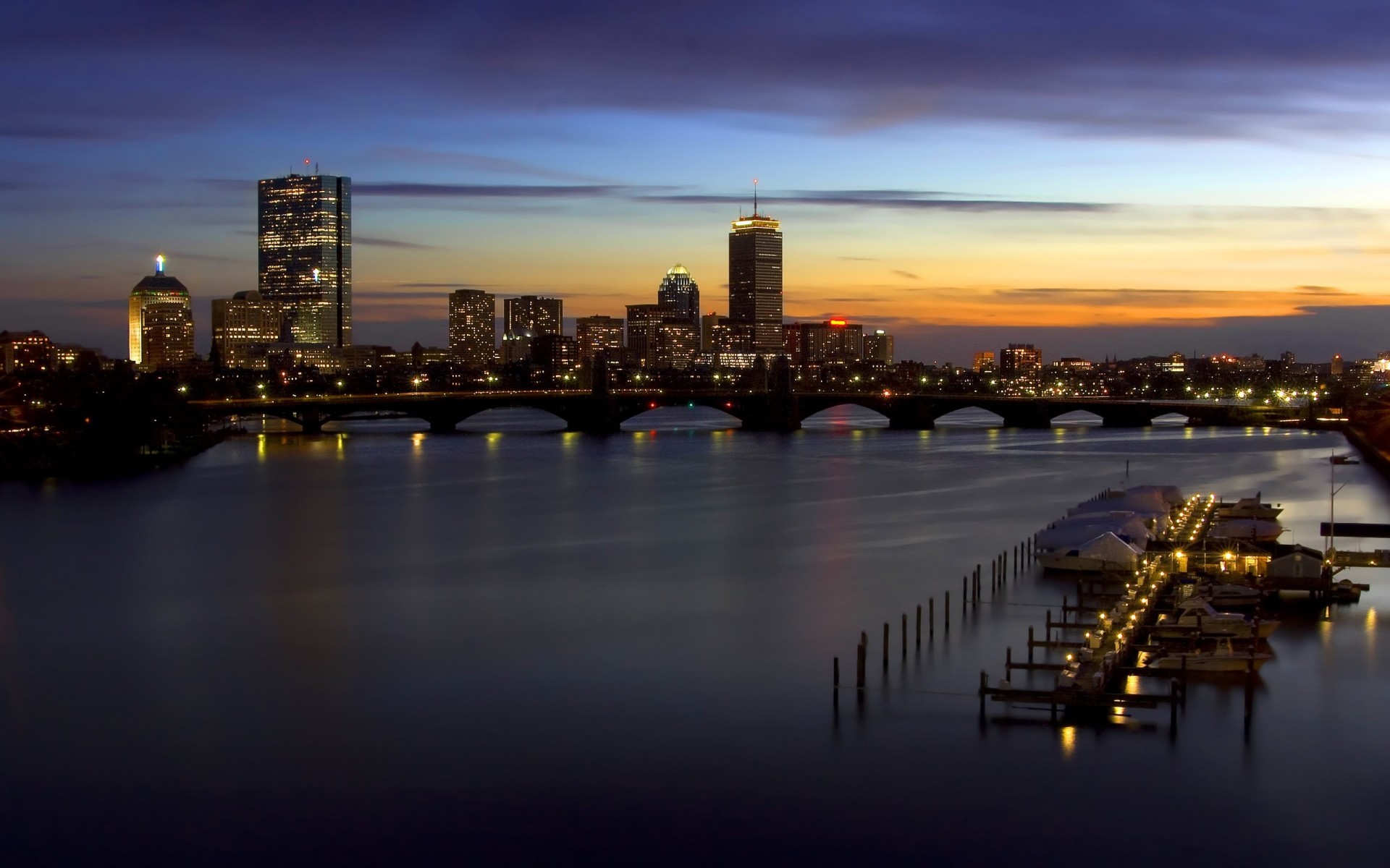 Muelle nocturno en el fondo del puente y la ciudadMuelle nocturno en el fondo del puente y la ciudad