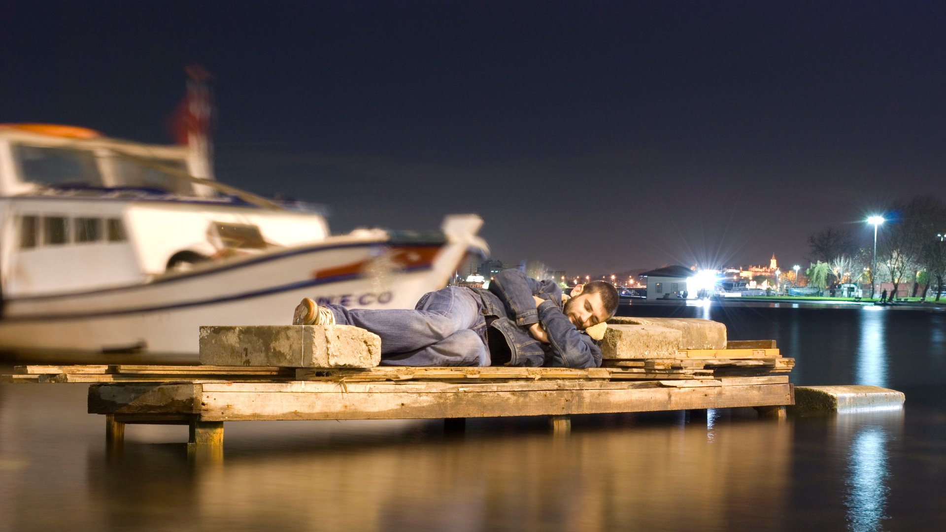La situación del hombre dormido en el puerto en las piedrasLa situación del hombre dormido en el puerto en las piedras