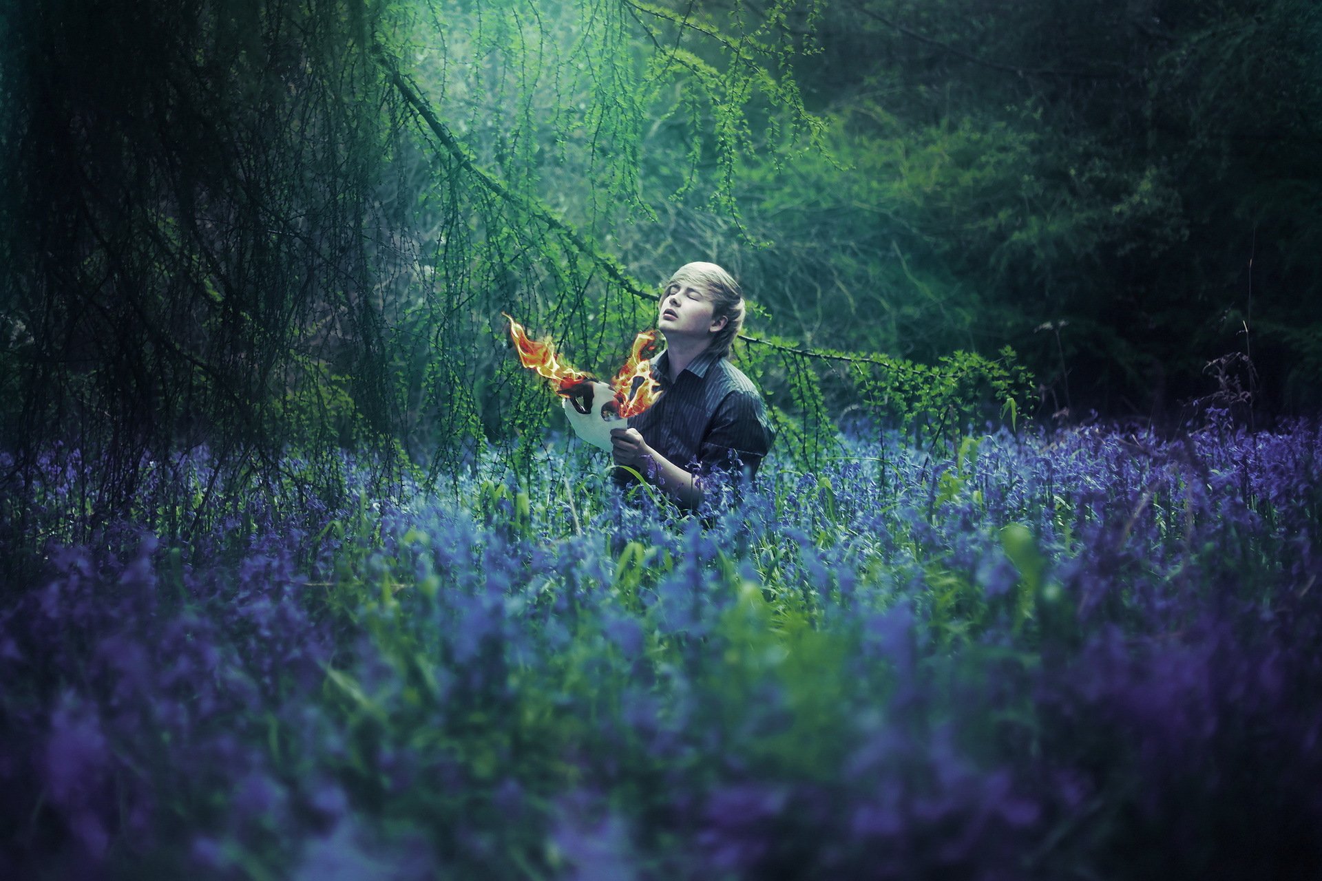 Dragón que extiende sus alas ardiendo con el fuego de los guerreros