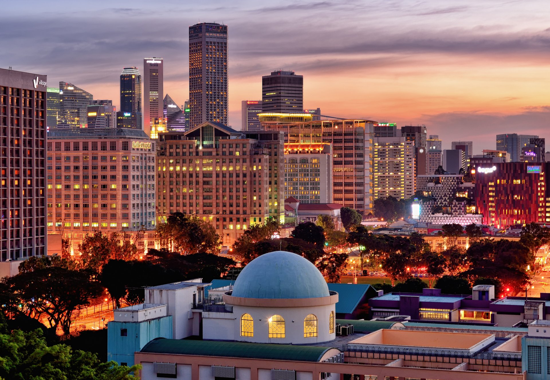El brillo de las luces nocturnas en la ciudad dormidaEl brillo de las luces nocturnas en la ciudad dormida