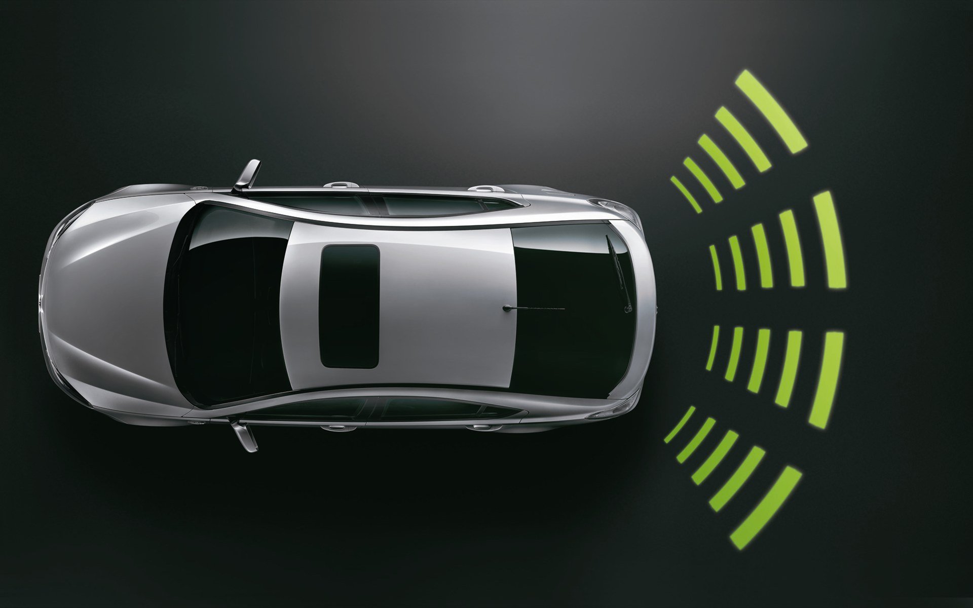 Amarillo Renault Megane se divierte en el tráfico en la pista de carreras