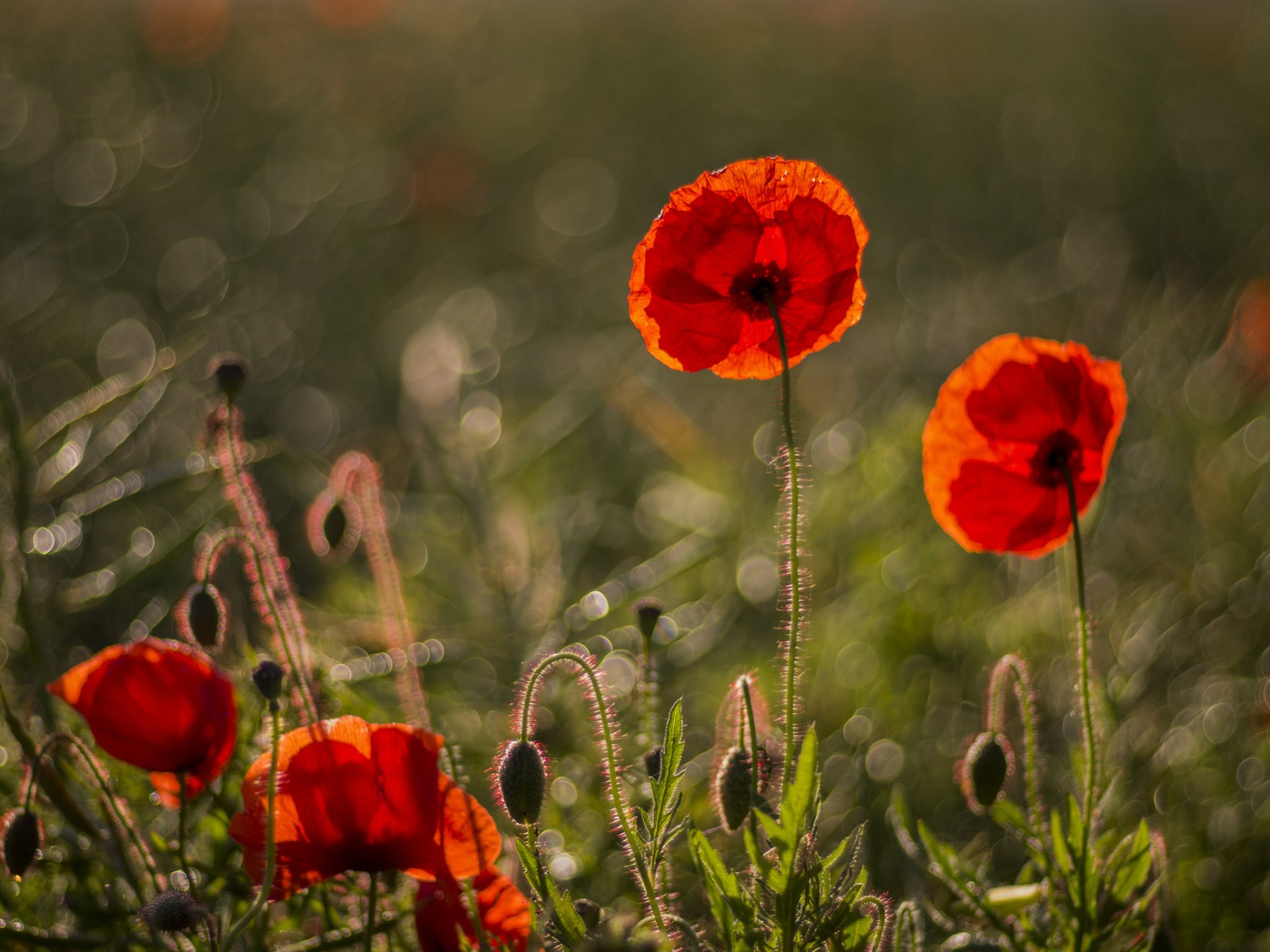 Hermosa floración de amapolas rojas . Foto de la naturaleza