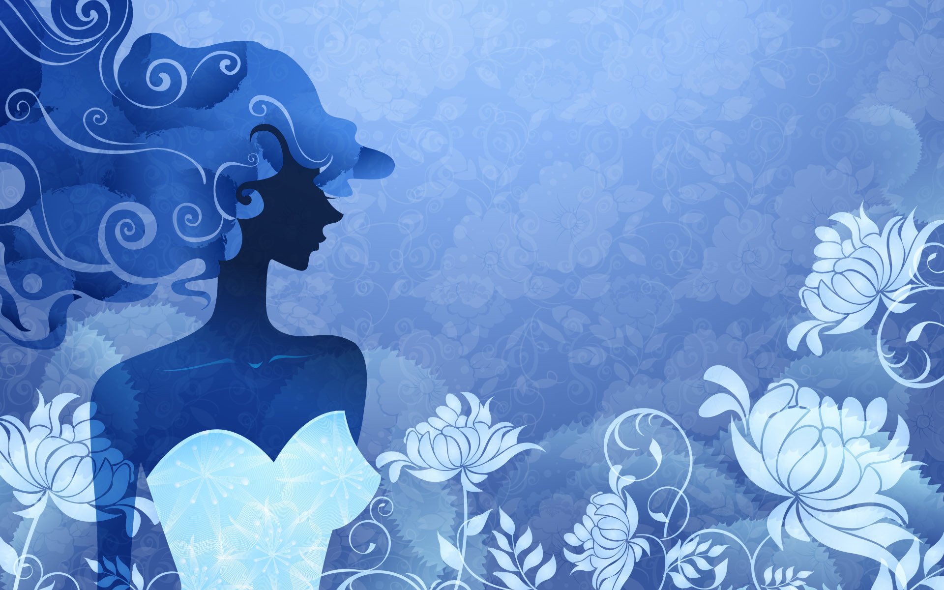 Silueta rosa con flores en el cabello sobre un fondo oscuro con letrasSilueta rosa con flores en el cabello sobre un fondo oscuro con letras