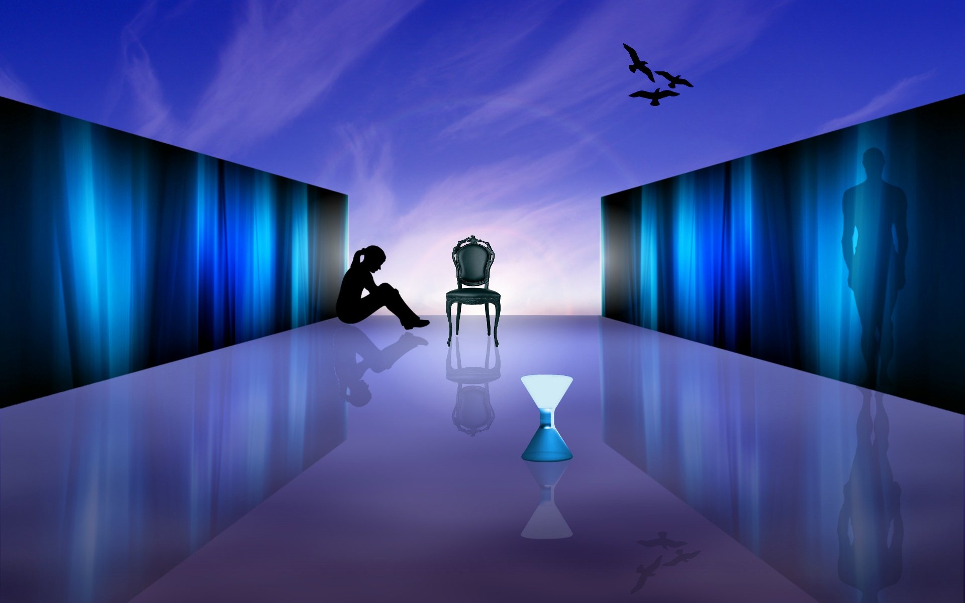 Silueta de una chica solitaria sentada en el Suelo