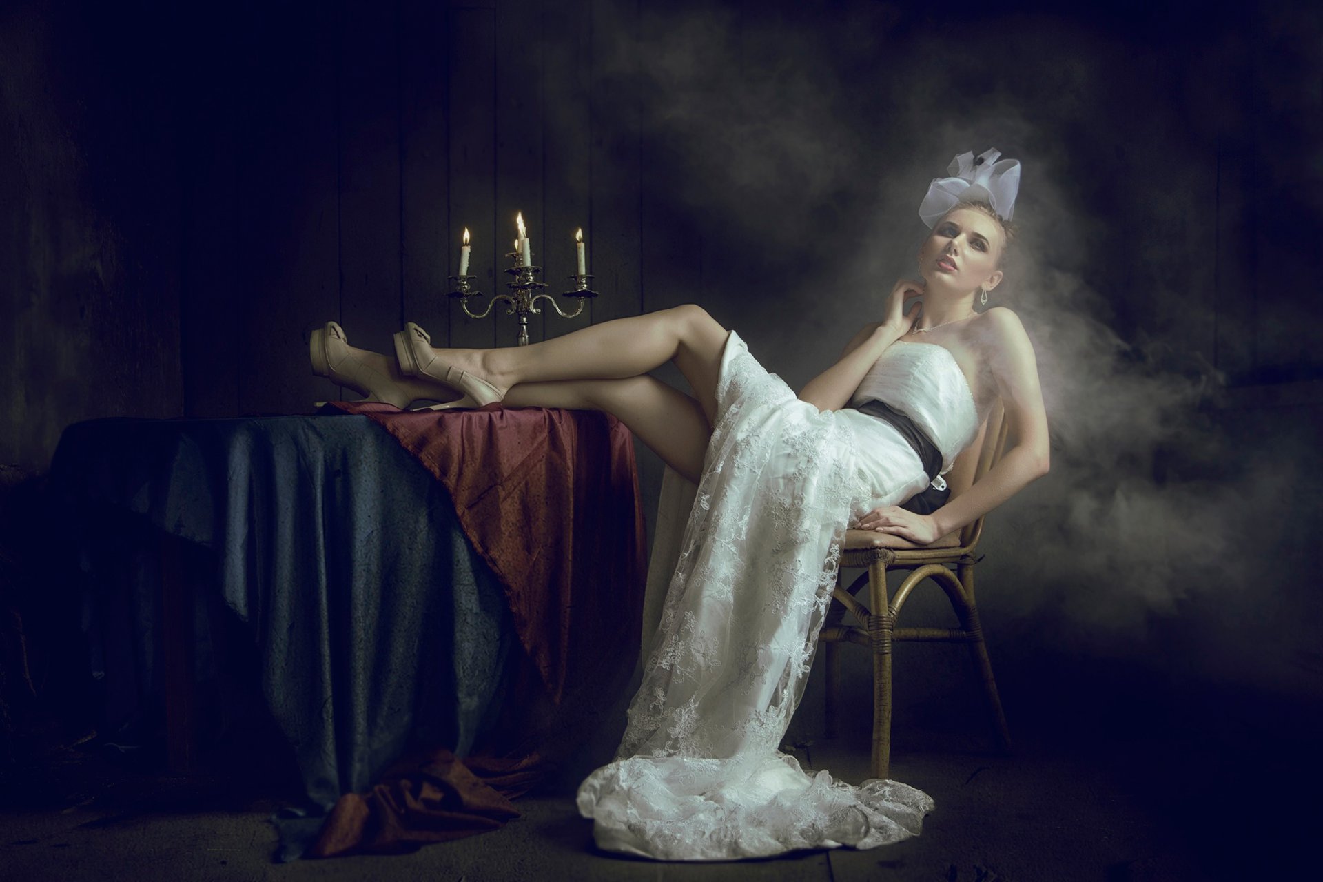 Hermosa chica con un sombrero se sienta en una silla, lanzando las piernas sobre la mesaHermosa chica con un sombrero se sienta en una silla, lanzando las piernas sobre la mesa
