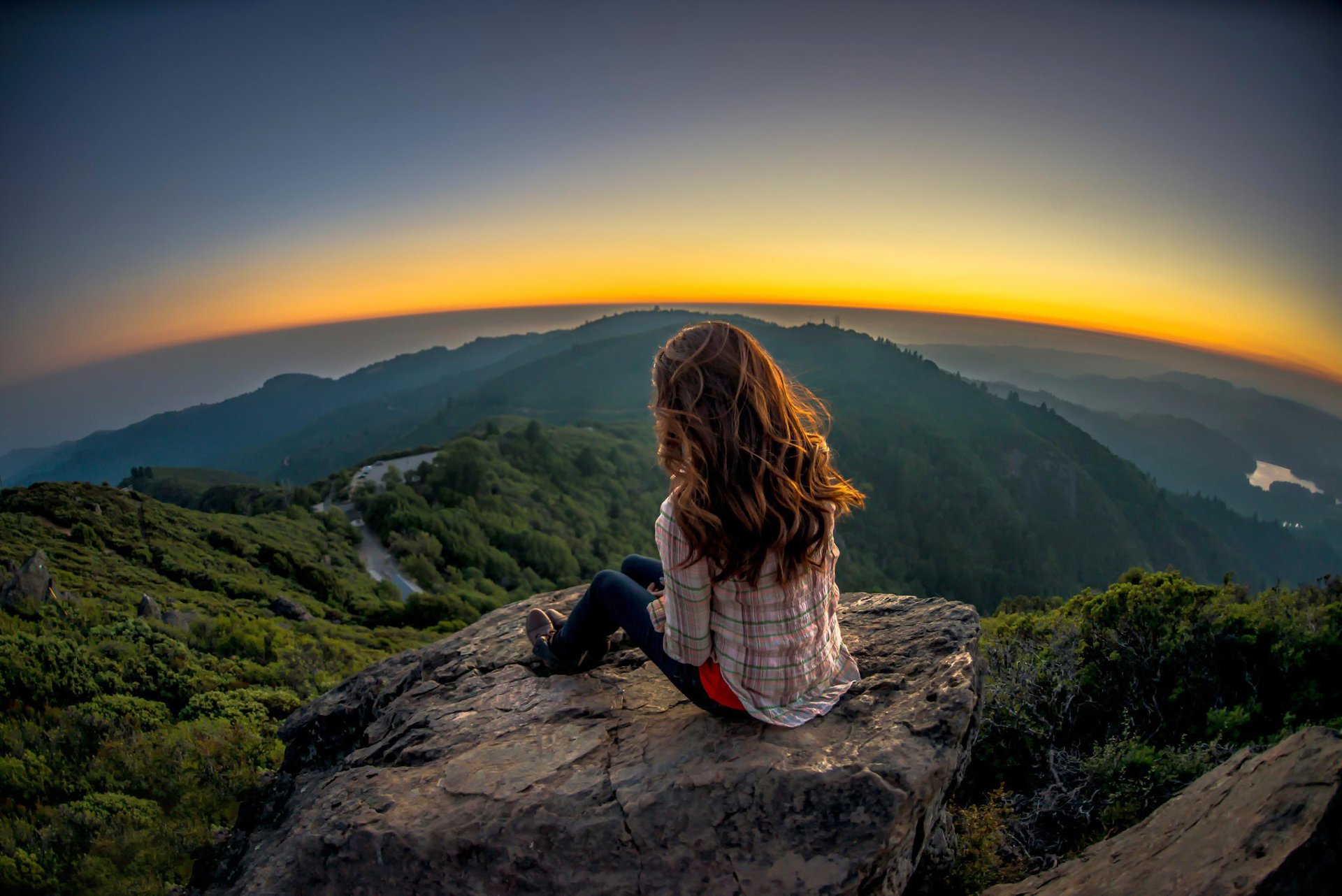 En las montañas, la piedra que cuelga sobre el precipicio permite ver las tierras bajas desde una vista de pájaroEn las montañas, la piedra que cuelga sobre el precipicio permite ver las tierras bajas desde una vista de pájaro