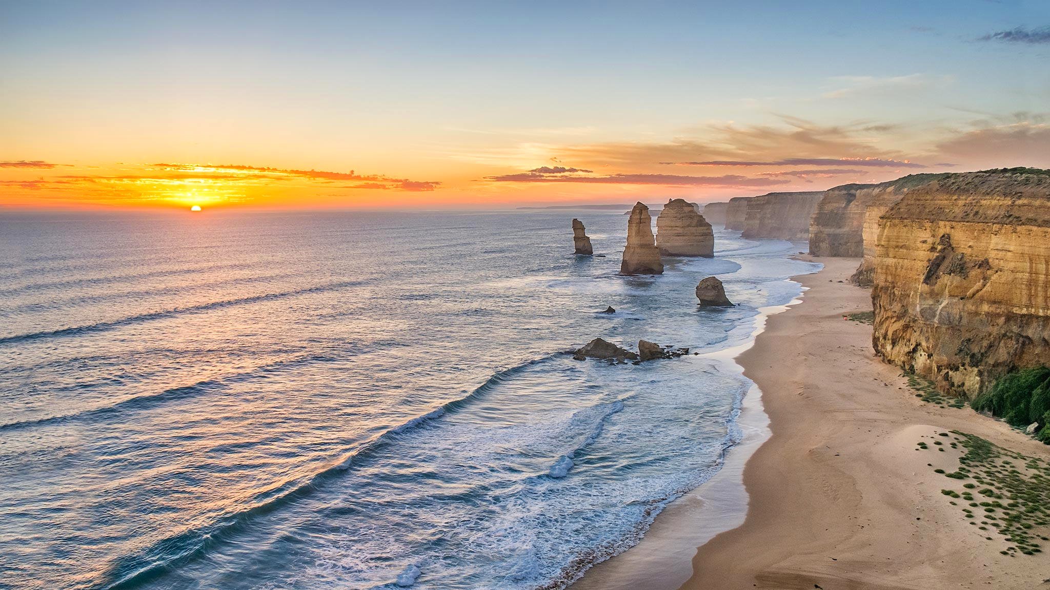 Una impresionante puesta de sol en la costa se refleja en el marUna impresionante puesta de sol en la costa se refleja en el mar