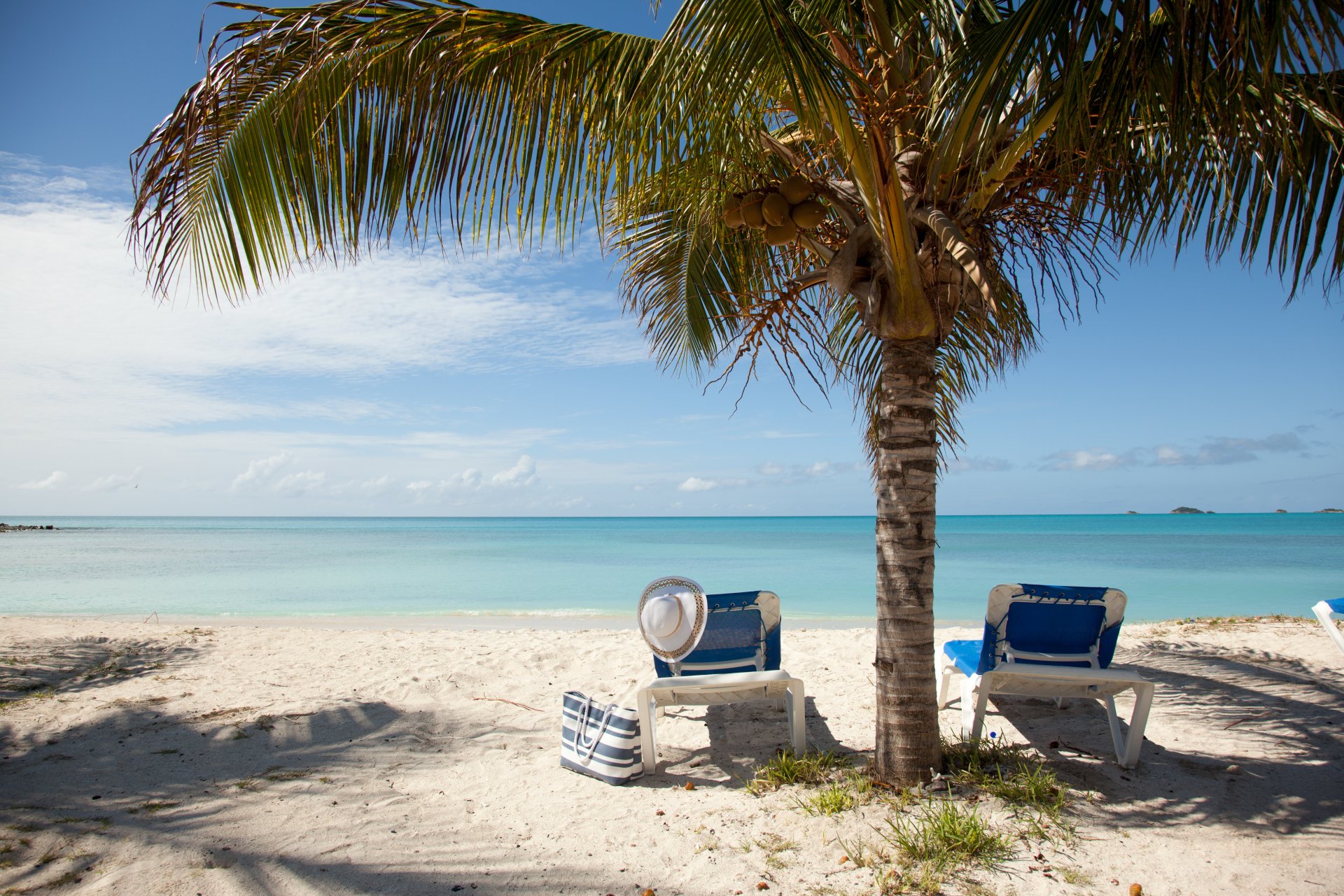 Relajarse en verano en la playa y el sol. la arena es cálida, las palmeras crean sombraRelajarse en verano en la playa y el sol. La arena es cálida, las palmeras crean sombra